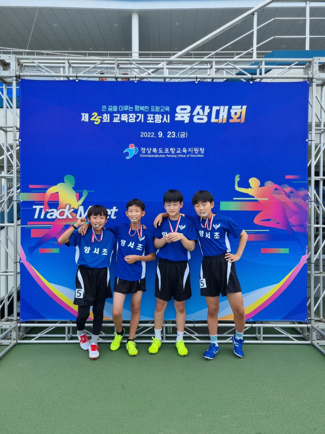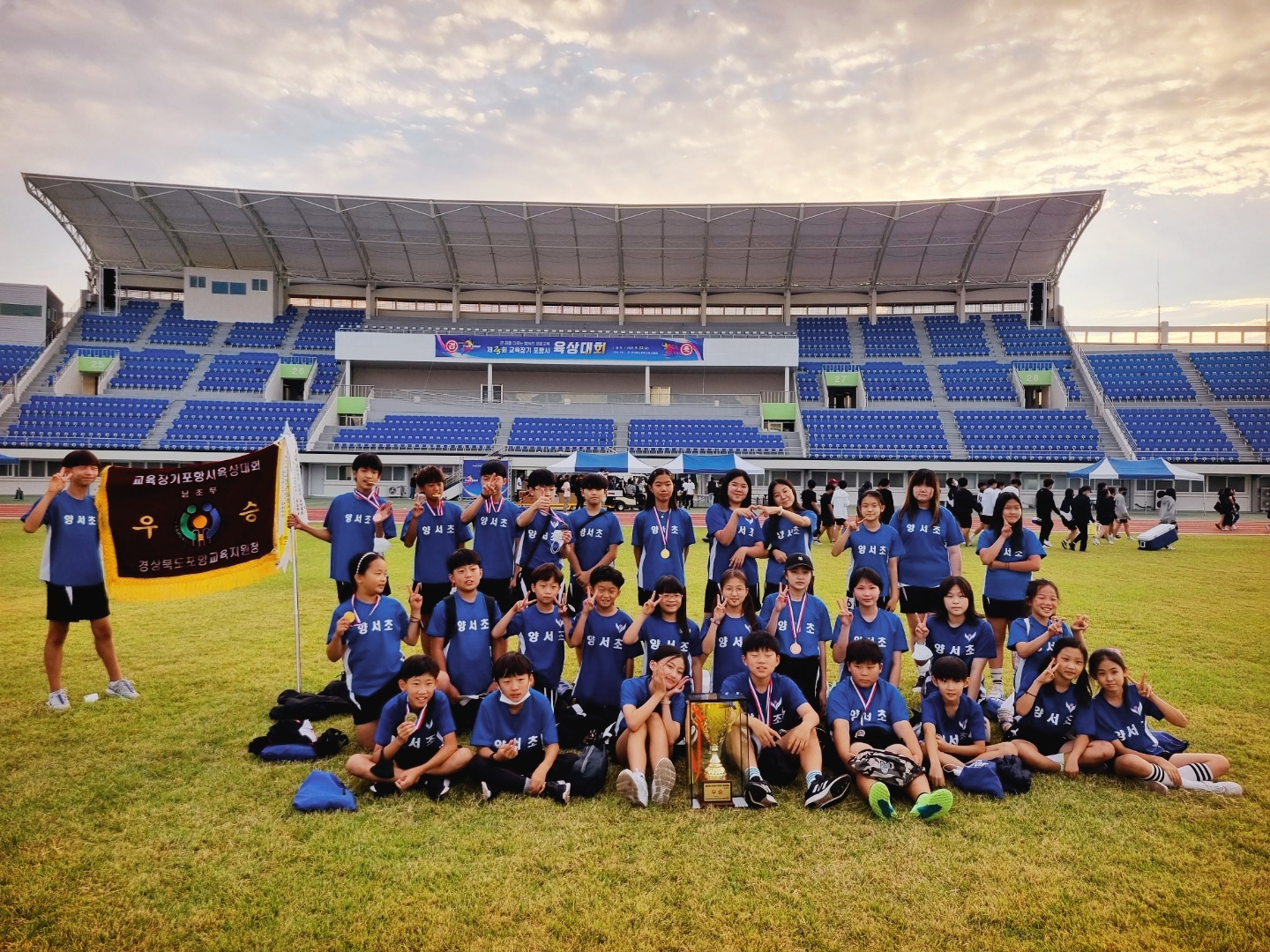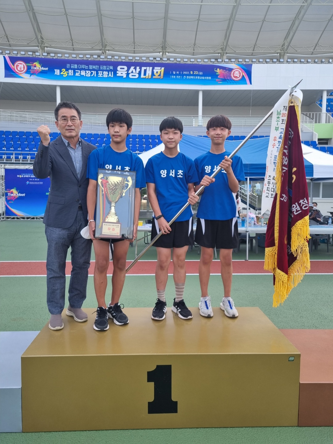 양서초등학교(교장 정승욱)는 지난 9월 23일(금)에 포항시 종합운동장에서 개최된 제25회 교육장기 포항시 육상대회에서 총점 52점으로 남초 1부 종합 우승을 차지하였다.