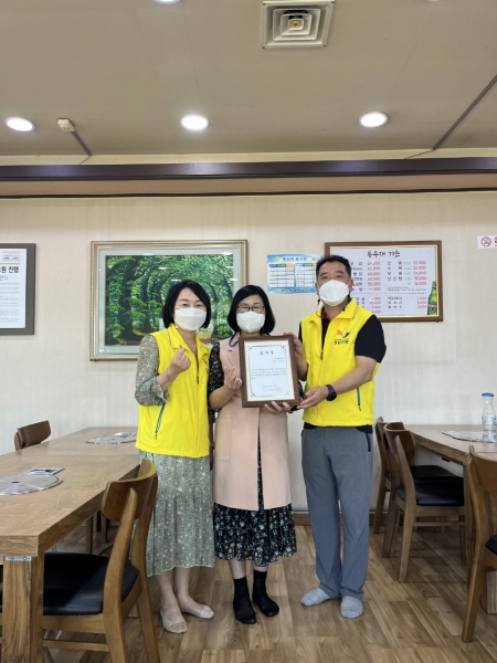 이번에 감사장을 전달한 업체는 봉우재가든, 촌가추어탕, 슈케익하우스로 총 3개소다.