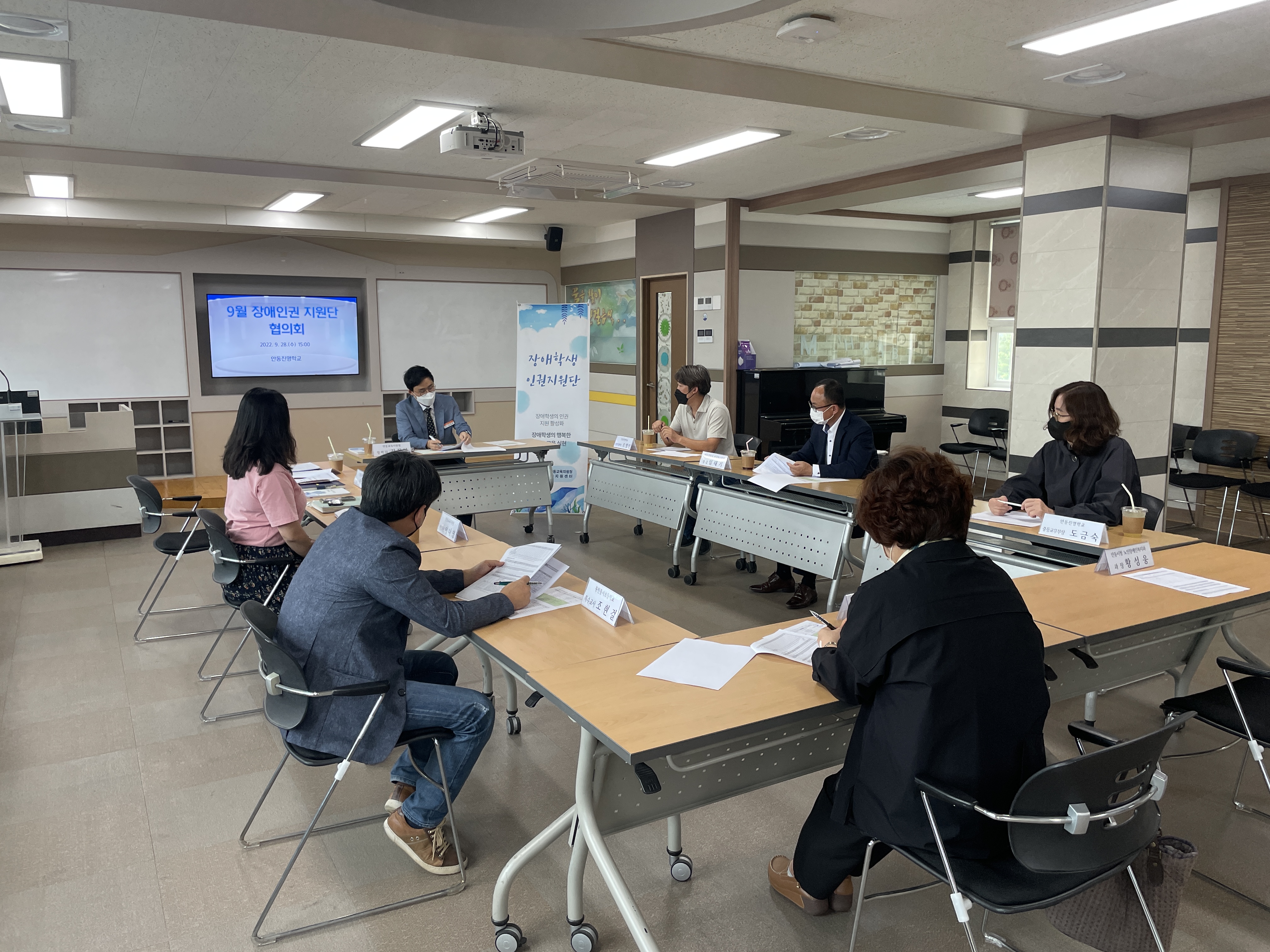 □ 경상북도안동교육지원청(교육장 이순호)은 9월 28일(수)에 장애학생의 행복한 학교교육을 실현하기 위한 장애학생 인권지원단 정기 현장지원을 안동진명학교에서 실시하였다.