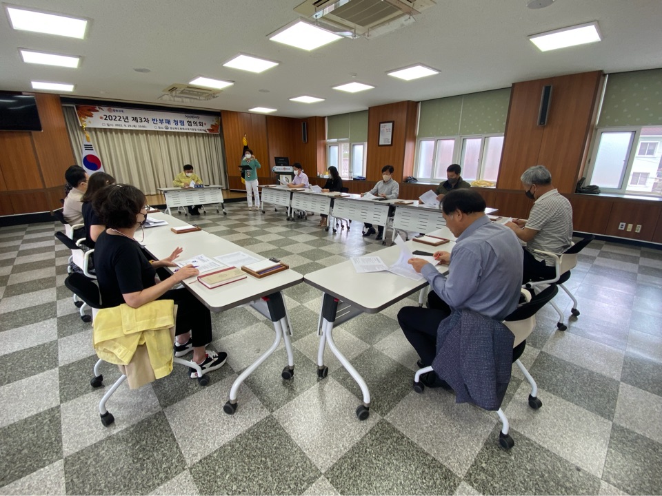 □ 봉화교육지원청(교육장 박명호)은 29일, 반부패 청렴 추진단 및 반부패 청렴 추진 T/F팀이 참석한 가운데 공직사회의 관행적 부패를 척결하고 정의로운 사회를 만들기 위해 반부패 청렴 협의회를 개최하였다.