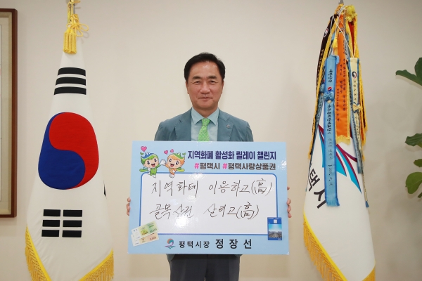 [금요저널] 평택시는 지난 27일 정장선 시장이 지역화폐 활성화를 위해 ‘지역화폐 활성화 챌린지’에 동참했다고 밝혔다.