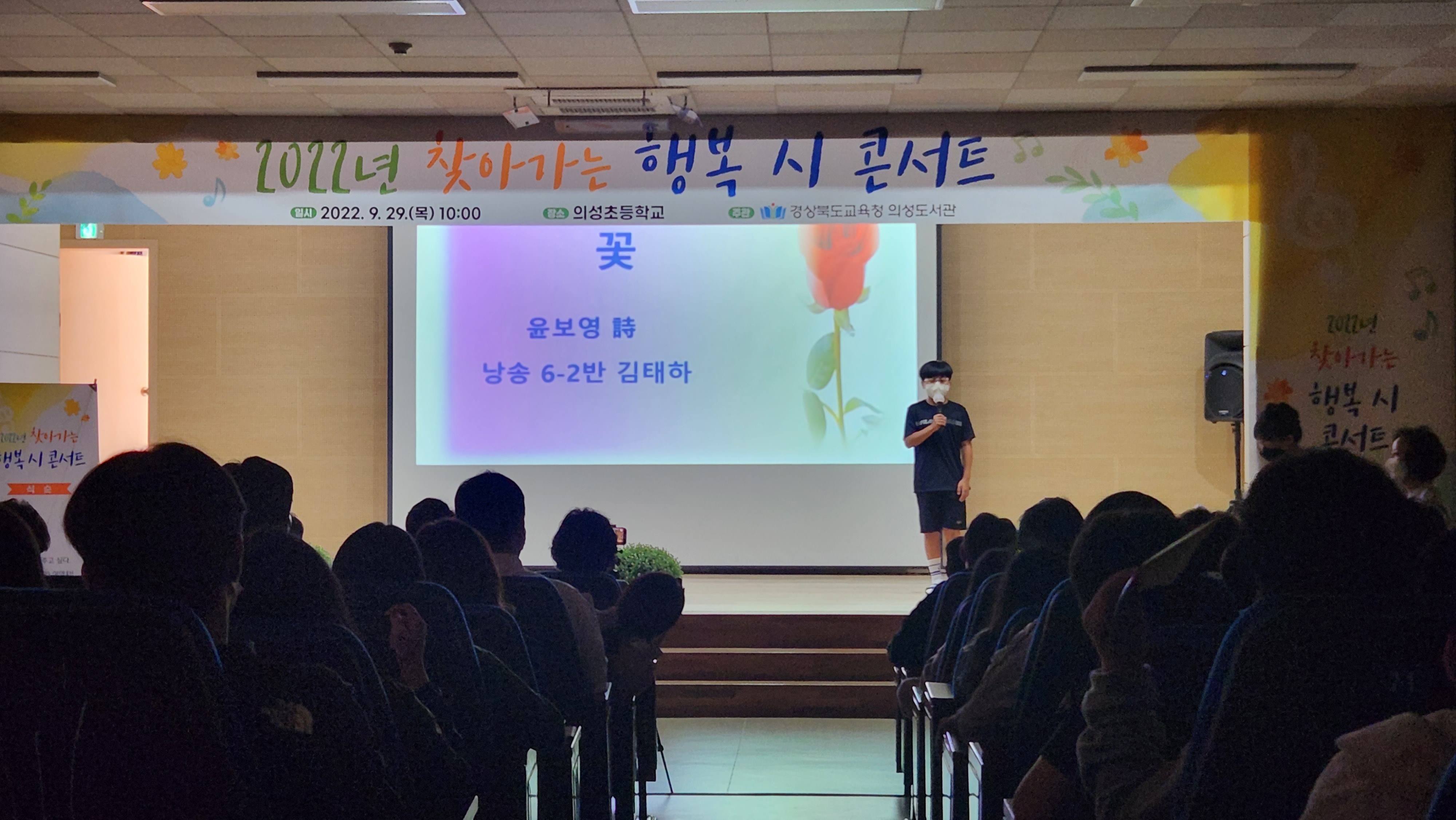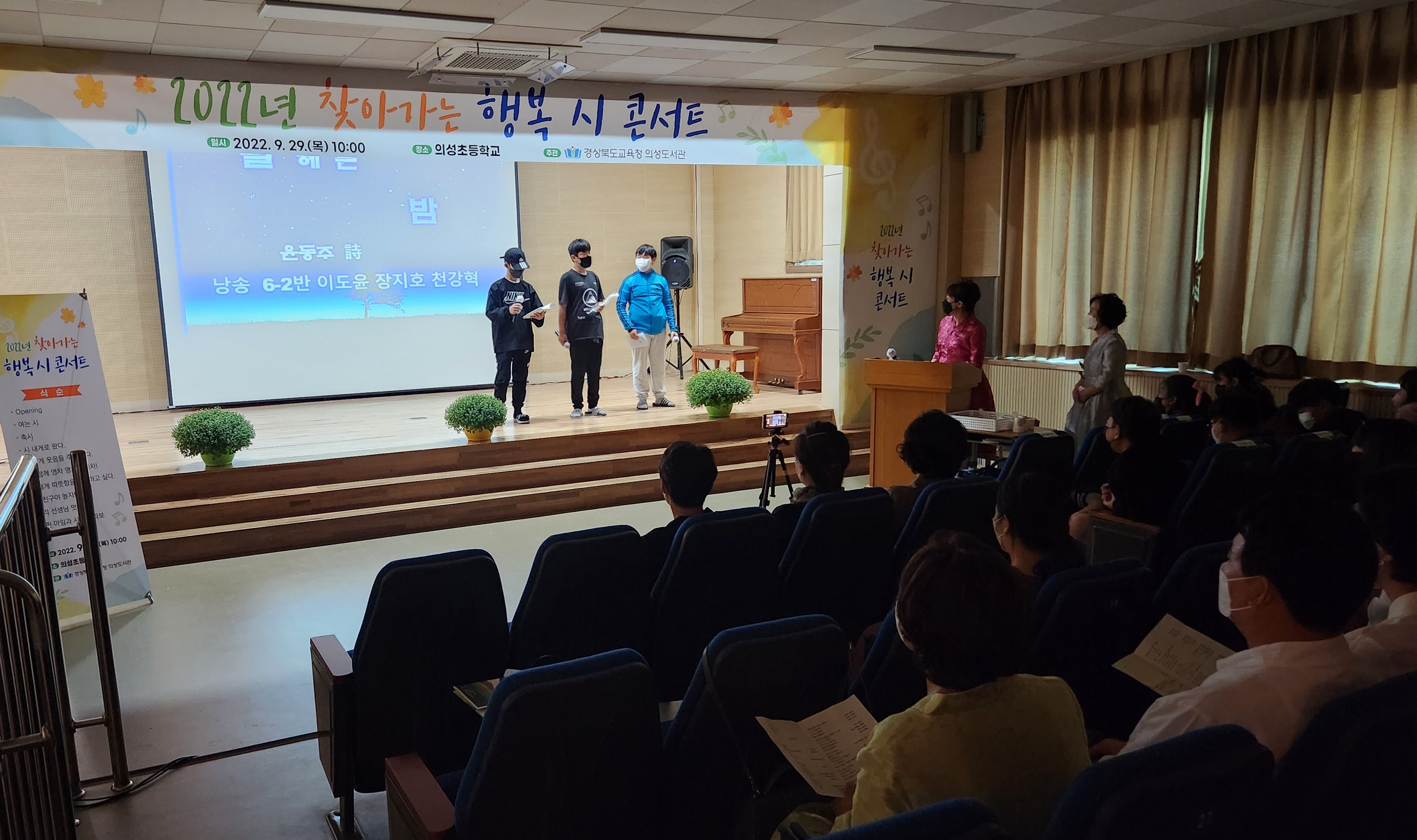 □ 경상북도교육청 의성도서관(관장 박상선)은 9월 29일(목) 10시에 의성초등학교 강당에서 학생 및 교사 100여 명과 함께 2022년 찾아가는 행복 시 콘서트를 개최했다.
