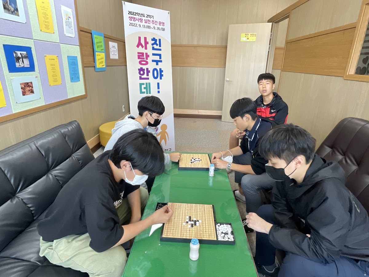□ 이번 행사는 굿네이버스 보편적 출생신고 등록 캠페인‘아이의 탄생’과 함께 ‘친구야 사랑한데이!’ 실천주간으로 운영되었다. ‘아이의 탄생’캠페인 활동을 통해 타인의 삶을 공감하고 소외되는 아동이 없이 모두 안전하게 성장할 수 있는 작은 실천방안을 모색해보는 시간을 가졌다. 또한 또래상담자와 함께하는‘마주봄 프로젝트’로 선후배가 마주보며 일상 속에서 작지만 소소한 행복 찾기를 위해 마련된 오목대회, 알까기 대회를 개최하여 학생들의 큰 호응을 얻었다.
