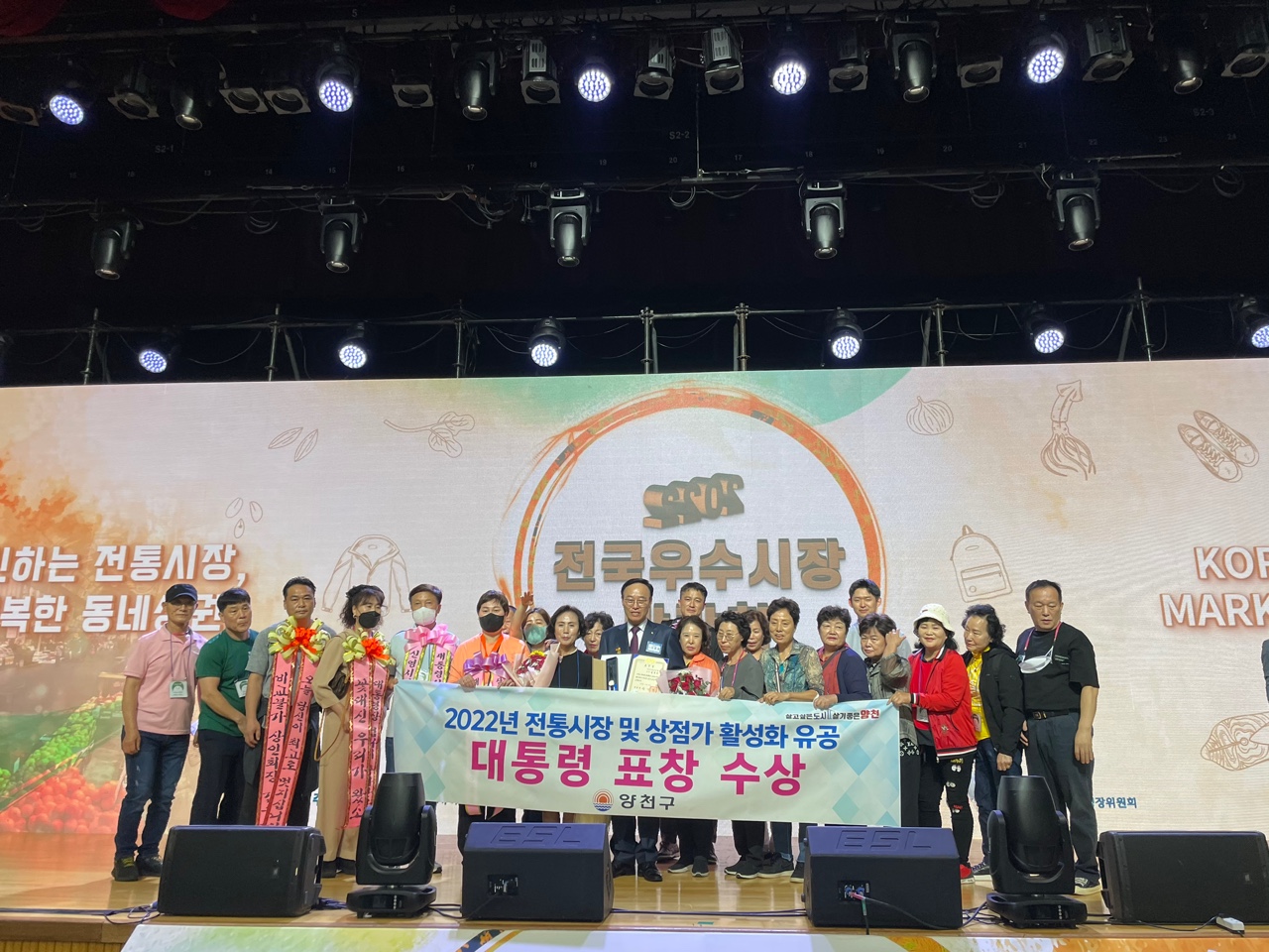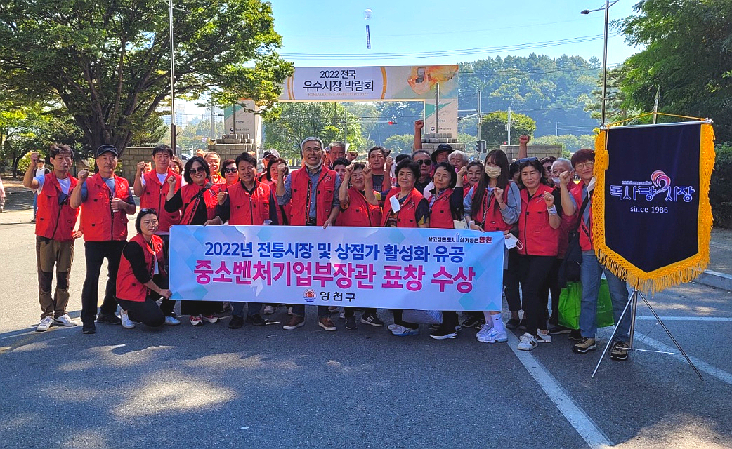 양천구(이기재 구청장)가 그간 펼쳐온 전통시장 활성화 지원사업이 수상으로 이어지며 빛나는 결실을 맺고 있어 화제다. 구는 목사랑시장이 2022년 전통시장 및 상점가 활성화 유공 포상에서 우수시장 부문 중소벤처기업부 장관상을 수상했다고 밝혔다.