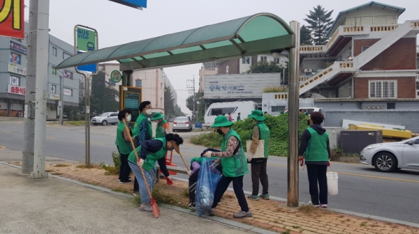 평택시 팽성읍 새마을남녀지도자, 버스승강장 환경정화 활동 실천