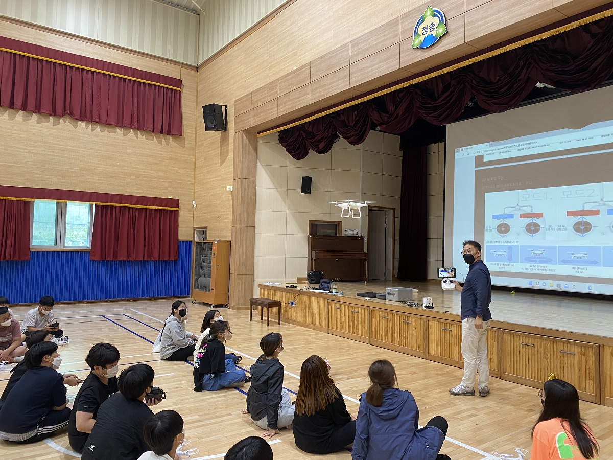 - 청송초등학교(남정일 교장)는 9월 15일(목)부터 9월 30일(금)까지 매주 목, 금요일마다 6학년 학생들을 대상으로 드론 특강을 진행한다. 이번 드론특강은 학생들에게 4차 산업혁명 시대에 대비하여 컴퓨팅사고력을 제고하고, 학생활동 중심의 SW교육을 통한 문제해결능력을 길러주는 데 목적이 있다.