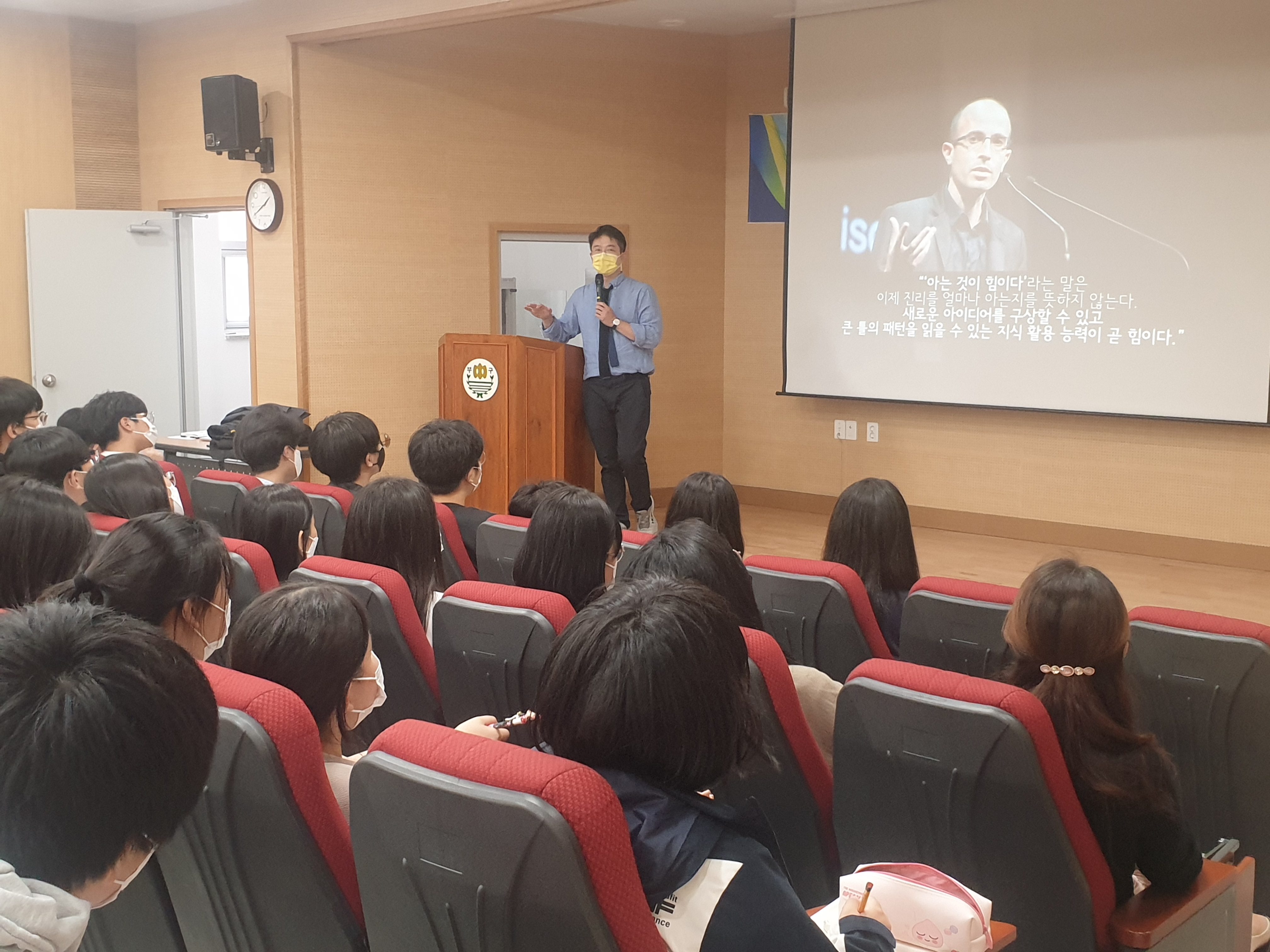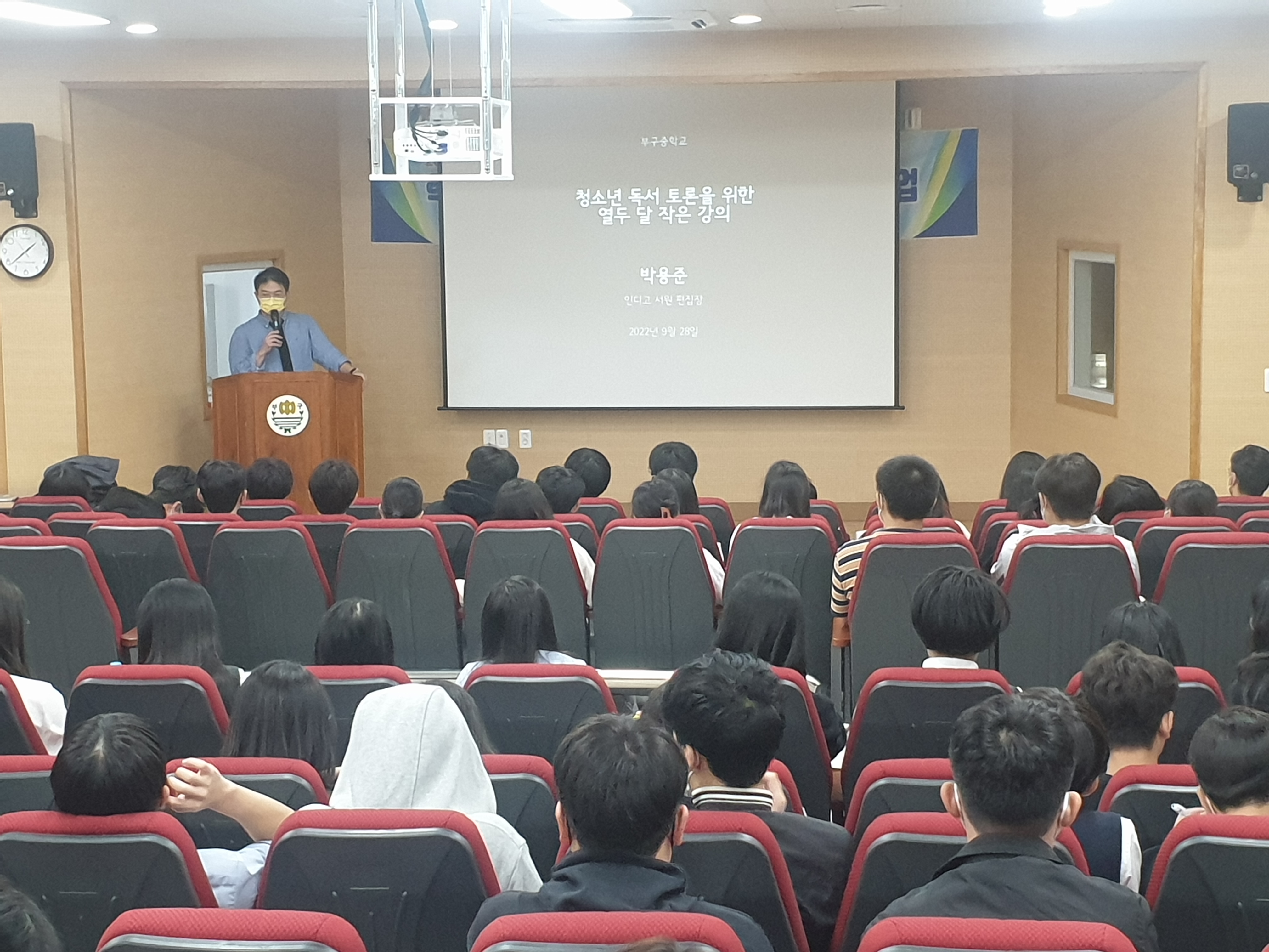 □ 부구중학교(교장 손홍식)는 2022년 9월 28일(수)에 인디고 서원 박용준 팀장을 초청해 인문학 특강을 실시했다. 이는 경상북도교육청에서 실시하는 특색 사업인 「따뜻한 행복교육」 실천학급 활동을 기반으로 하여 구체적·실천적 행복 경험을 통해 생활 속에서 연습할 수 있는 기회를 제공하고자 함에 목적이 있었다.
