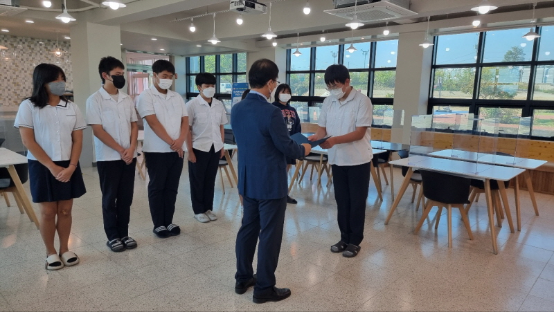 용궁중학교(교장 김중식)는 2022년 9월 30일 용궁중․상고 총동창회(회장 도기준)에서 기탁한 학교발전기금 장학금 전달식을 가졌다.