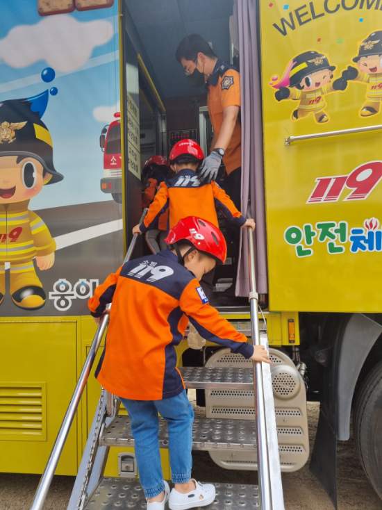 ▣ 영양초등학교병설유치원(원장 이승준)은 9월 29일(목) 31명의 유아와 함께 영양초등학교병설유치원 운동장에서 찾아오는 이동 버스 안전교육으로 지진 및 화재 대피 체험활동을 실시했다.