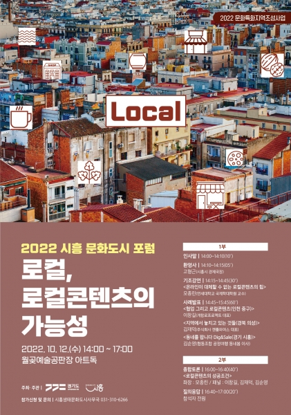 ‘2022 시흥 문화도시 포럼’은 ‘로컬, 로컬 콘텐츠의 가능성’이라는 주제로 오는 10월 12일 오후 2시부터 월곶예술공판장 아트독에서 개최된다.