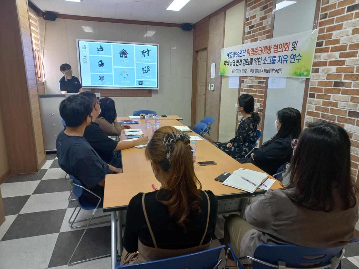 경상북도봉화교육지원청(교육장 박명호)은 지난 2022년 9월 30일(금) 봉화 관내 Wee센터 및 Wee클래스 전문상담교사 및 전문상담사를 대상으로 학생상담관리 강화를 위한 소그룹 치유 연수를 실시했다.