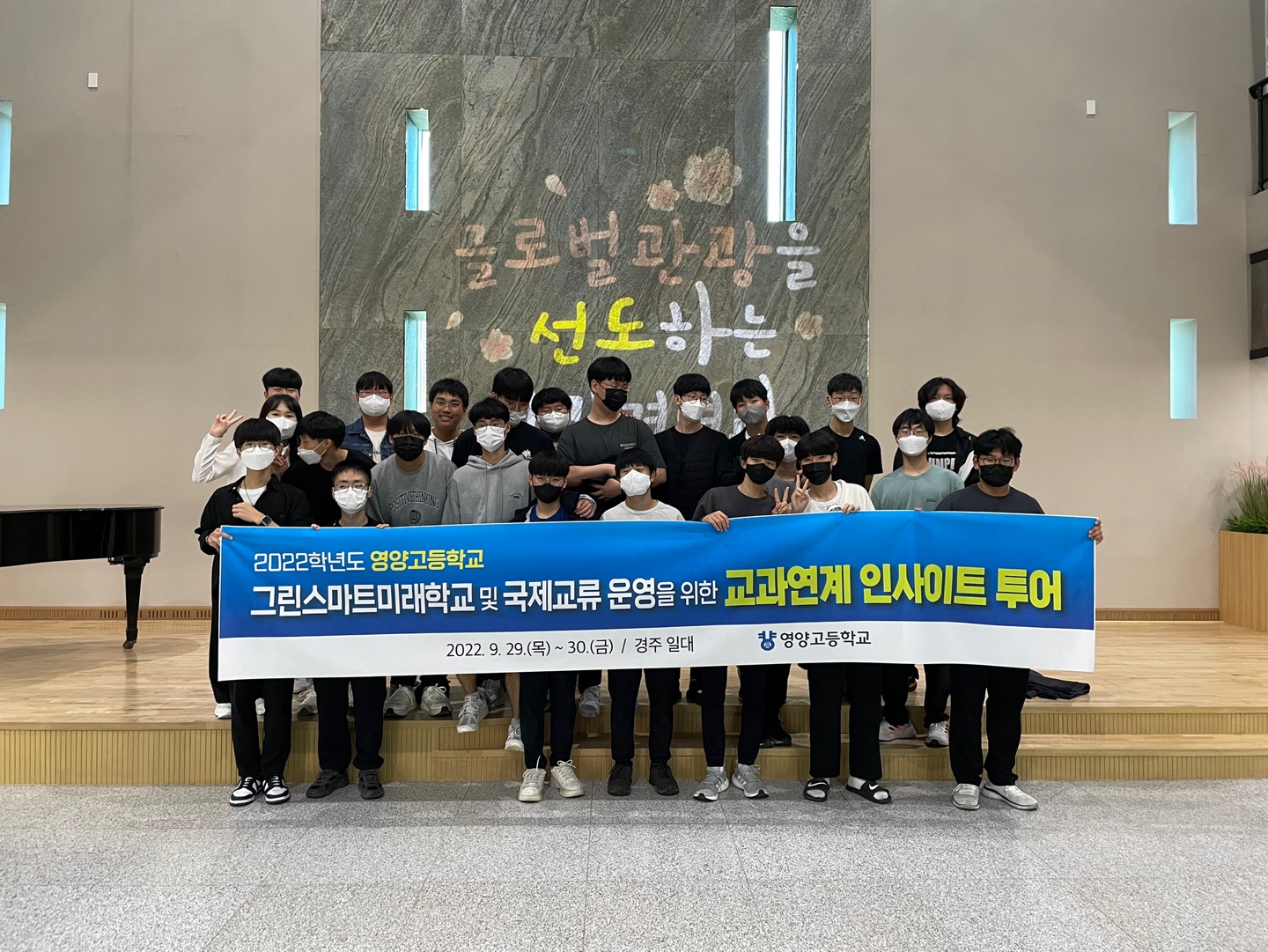 영양고등학교(교장 박천익)는 그린스마트미래학교사업의 일환으로 9월 29~30일 이틀간 공간 혁신 우수학교와 건축물을 방문하여 미래학교와 학교 공간에 대한 통찰력을 함양하기 위해 인사이트 투어를 실시하였다.