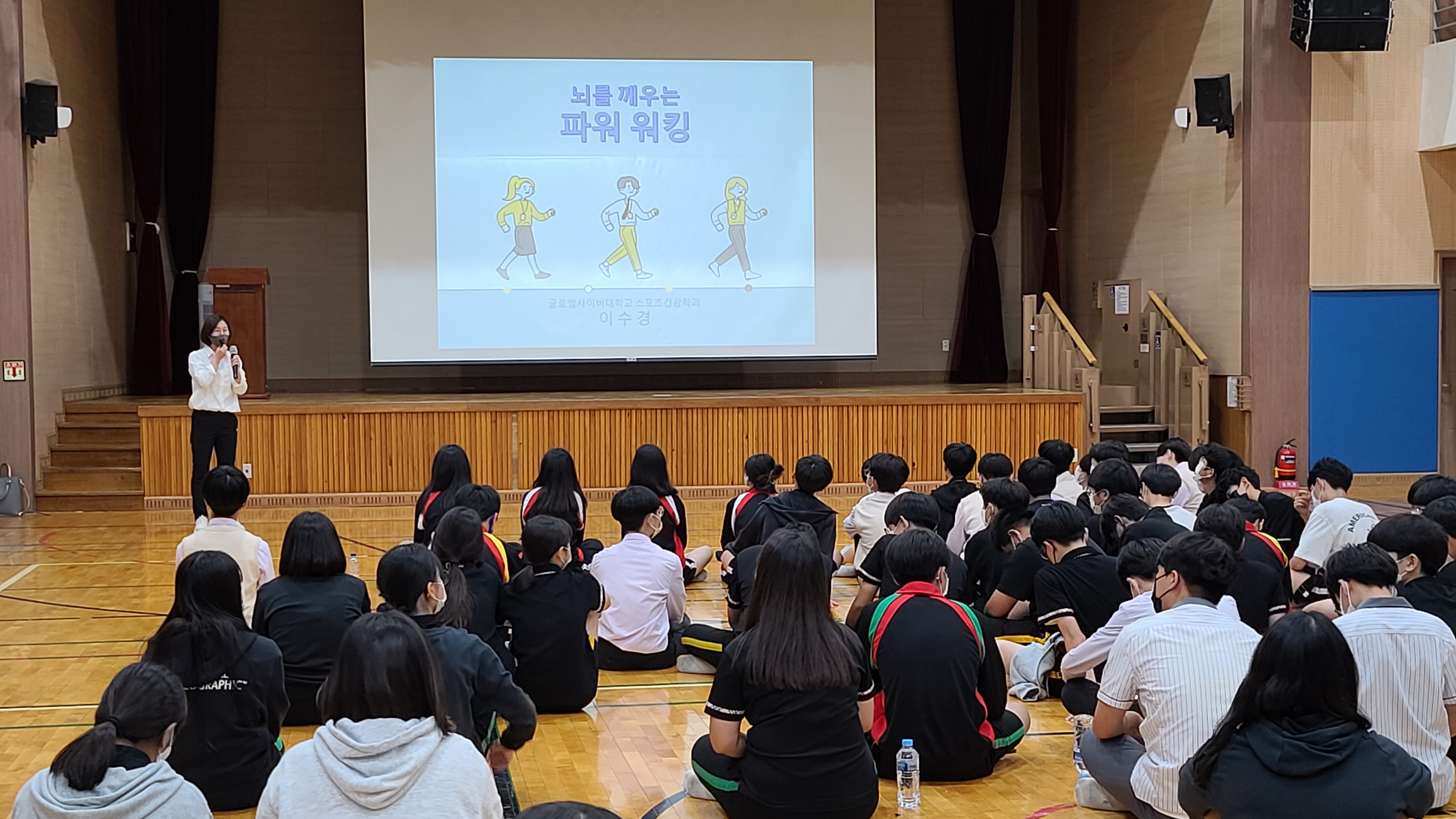형곡중학교(교장 이승연)는 2022년 9월 30일(금) 14:30~16:30에 청솔관(본교 강당)에서 2022학년도 바르게 걷기 활성화 연수의 일환으로 ‘뇌를 깨우치는 파워 워킹’이론과 실습 연수를 병행하였다.