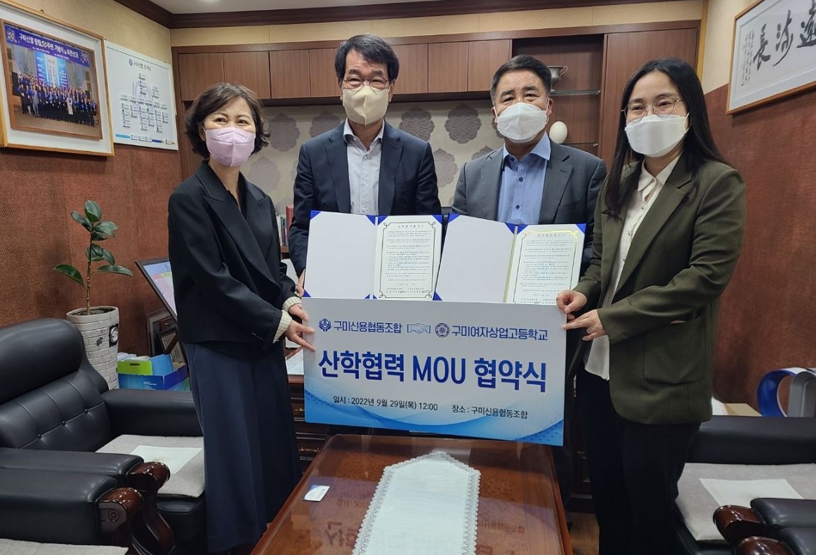 □ 구미여자상업고등학교(교장 김세경)는 9월 29일 지역 내 금융기관 인재양성을 위해 구미신용협동조합과 업무협약을 체결했다. 구미신용협동조합에서 진행된 협약식에는 구미여자상업고등학교장, 김종찬 이사장 등 관계자 6명이 참석했다.
