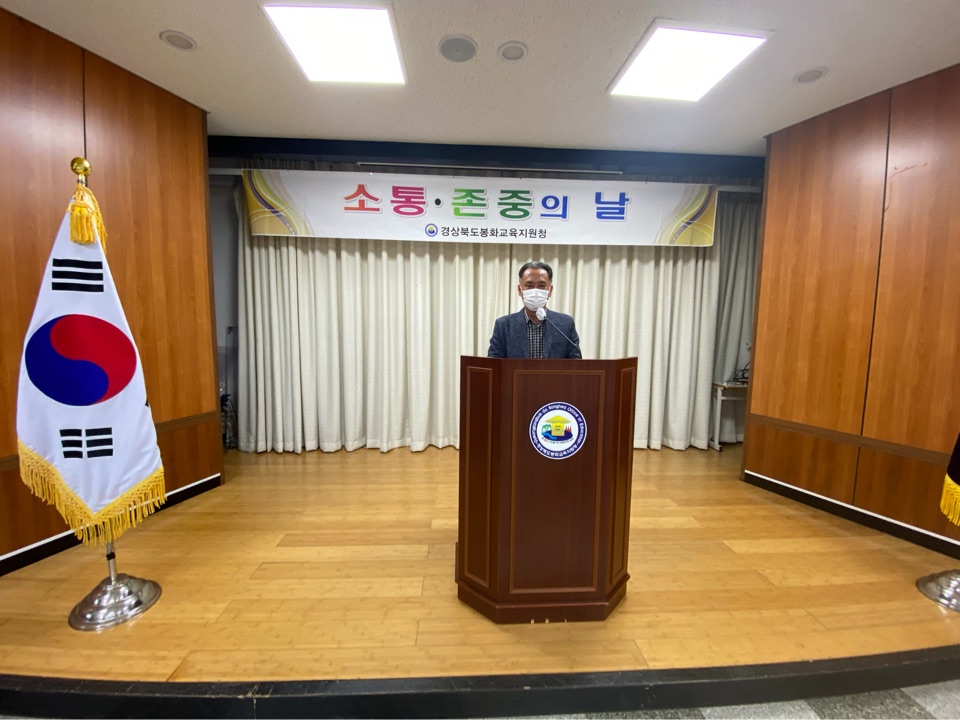 □ 봉화교육지원청(교육장 박명호)은 4일, 소통·존중의 날을 맞이하여 봉화교육지원청과 봉화도서관 전 직원이 참석한 가운데, 대회의실에서 교육장 청렴 특강을 실시했다.
