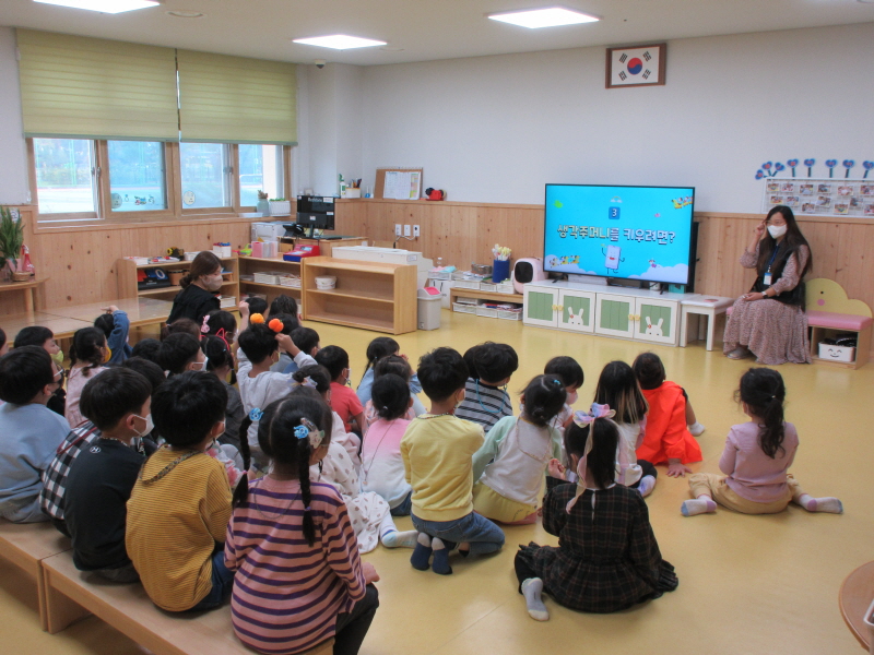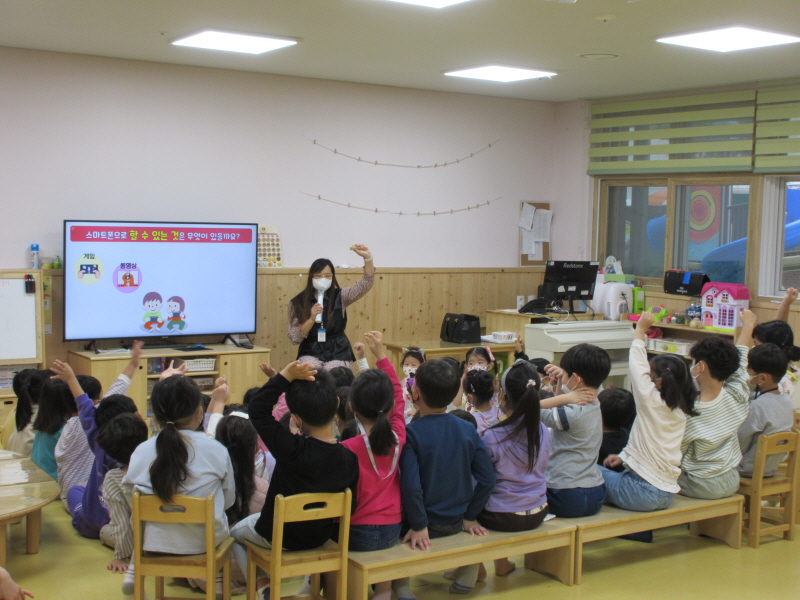 이번 교육은 인터넷∙스마트폰 과의존의 이해, 예방, 탈출 등에 대해 유아들에게 도움을 주고자 스마트쉼센터와 연계하여 실시되었으며, 인터넷·스마트폰·미디어의 위해성을 알고 미디어 사용에 대해 경각심을 가지고 유아들이 현명한 미디어 사용자가 되도록 하는데 목적을 두고 교육하였다.