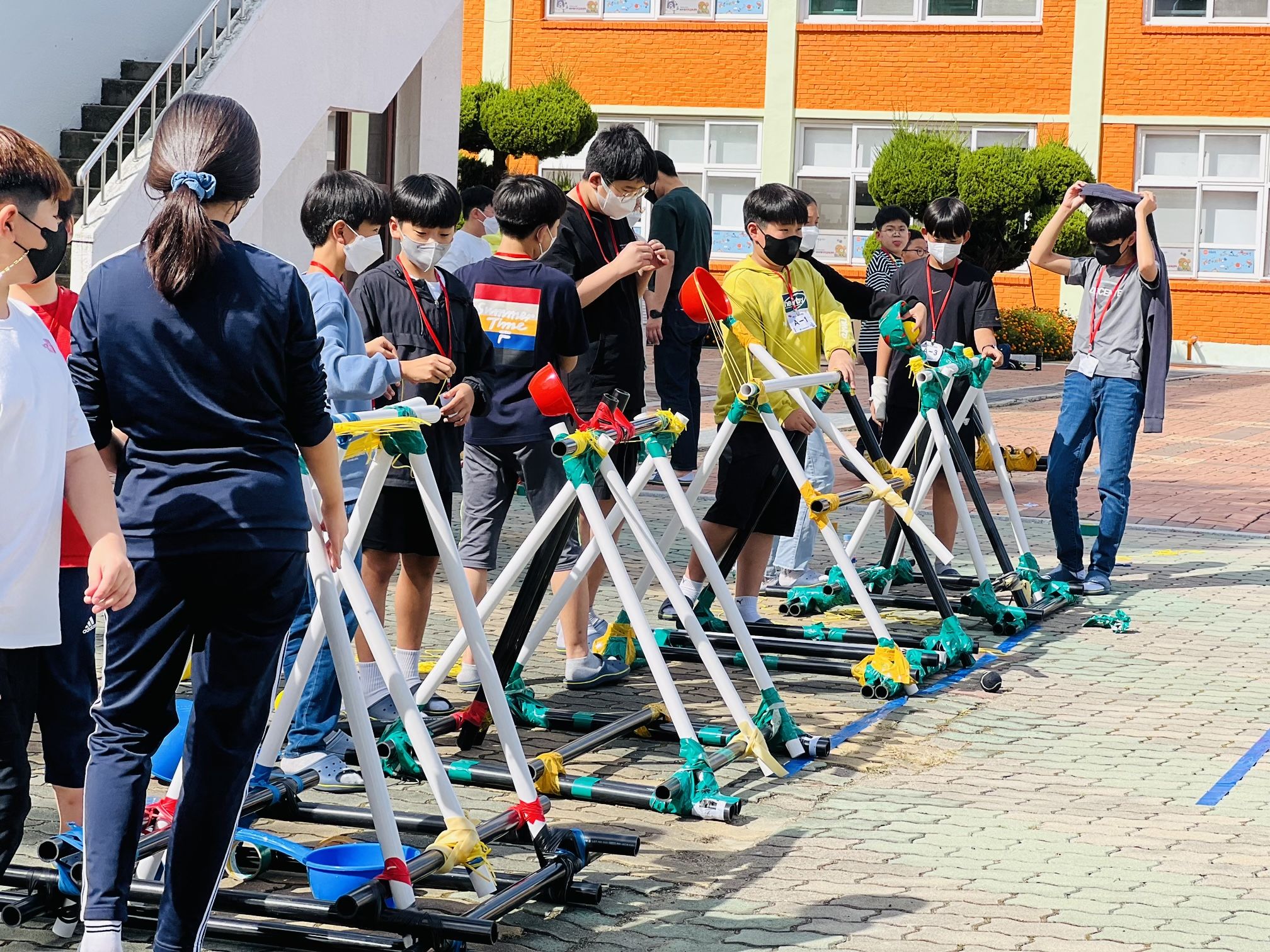 특강 이후 <팡팡! 투석기 프로젝트>라는 주제로 학생들이 투석기에 대한 정보를 탐색하고 3인 1조로 대형 투석기를 설계, 제작하여 다양한 발사 미션을 해결하는 형태로 운영되었다.