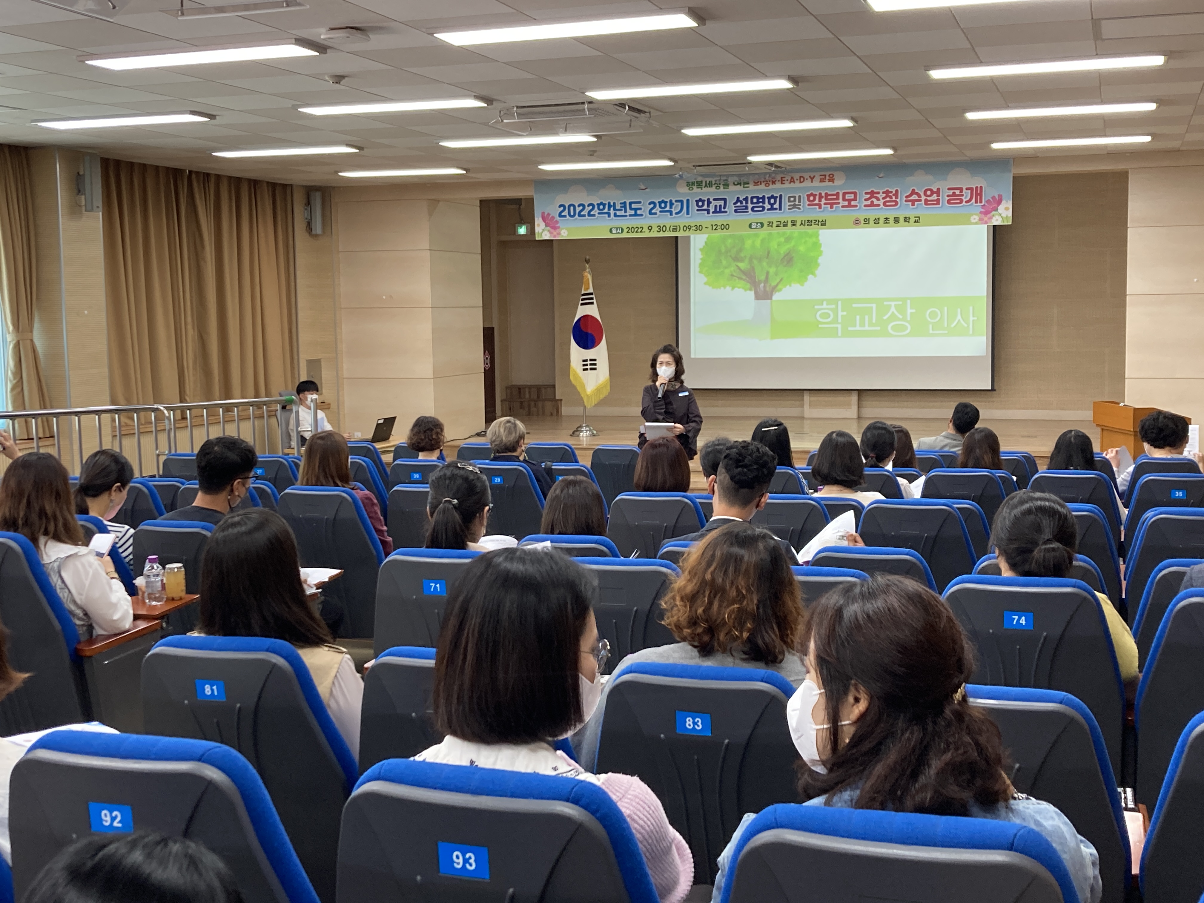 코로나로 인해 그동안 비대면으로 이루어졌던 학교 설명회와 공개 수업이 3년 만에 대면으로 진행되자 학부모 330여 명이 참석하여 대성황을 이루었다. 특히 학부모초청 공개 수업에서는 각 교실이 학부모들로 가득 차 일부는 복도에서 지켜보는 불편함이 있었으나 교실 수업을 볼 수 있다는 기회가 마련되어 다행이라는 표정이 더 역력하였다.