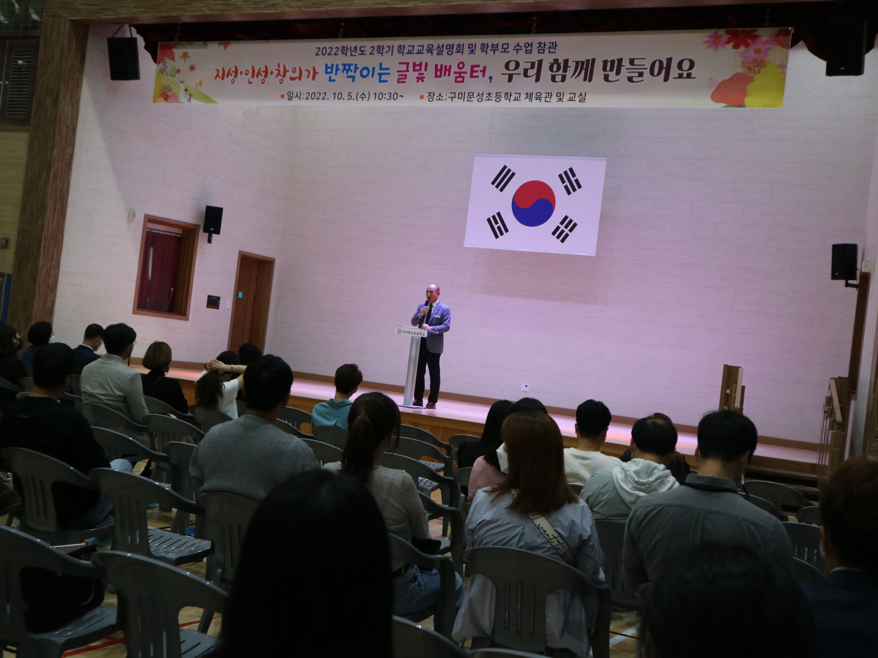 구미문성초등학교(교장 김광휘)는 지난 10월 5일 수요일 10:30부터 학교 체육관에서 학부모 500여명을 초청하여 2022학년도 2학기 학교교육설명회를 열었다. 코로나19이후 3년만에 개최되는 학교교육설명회라 그런지 자녀교육에 대한 소중한 정보를 얻고자 여느 해보다 많은 학부모들이 참여하였다.