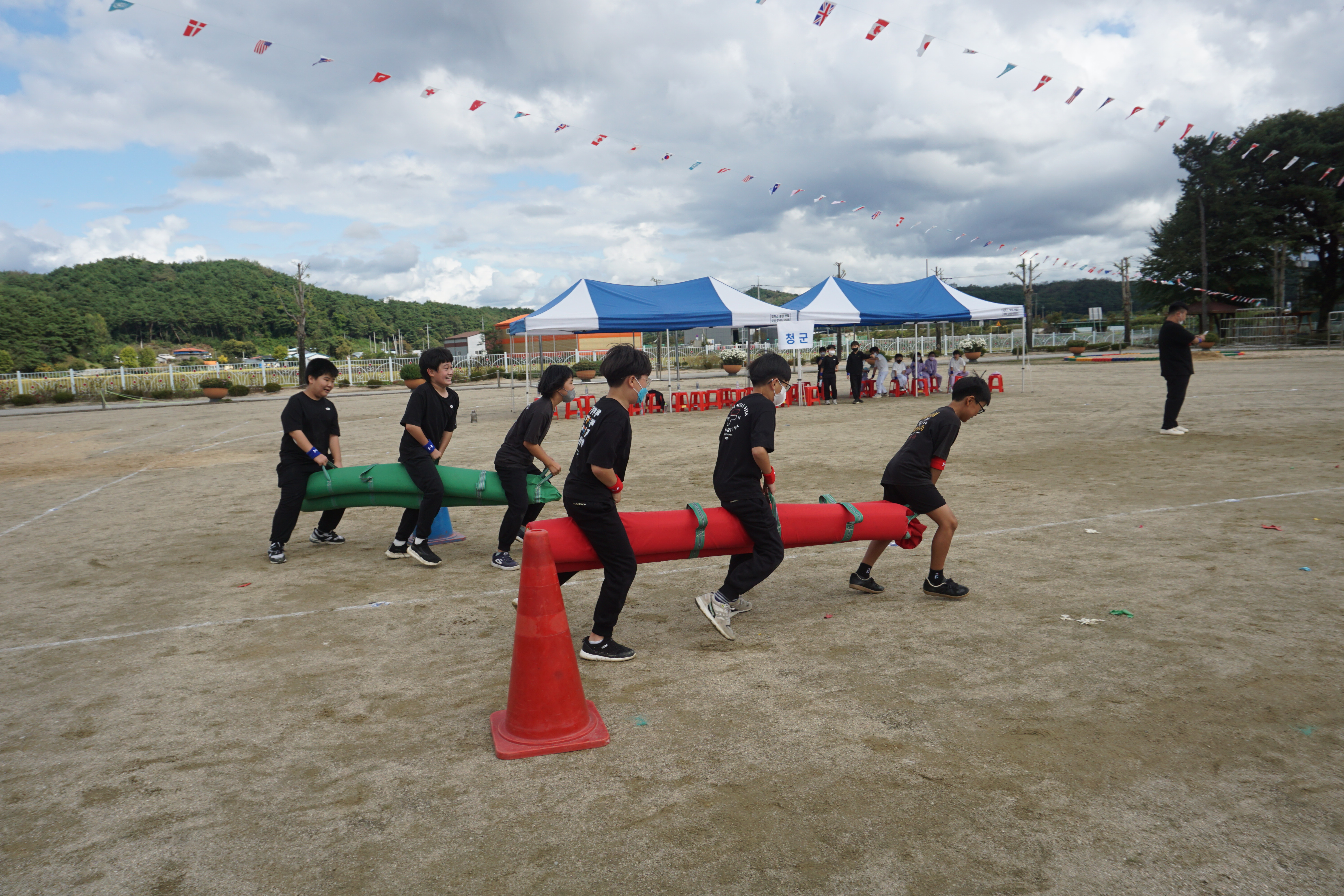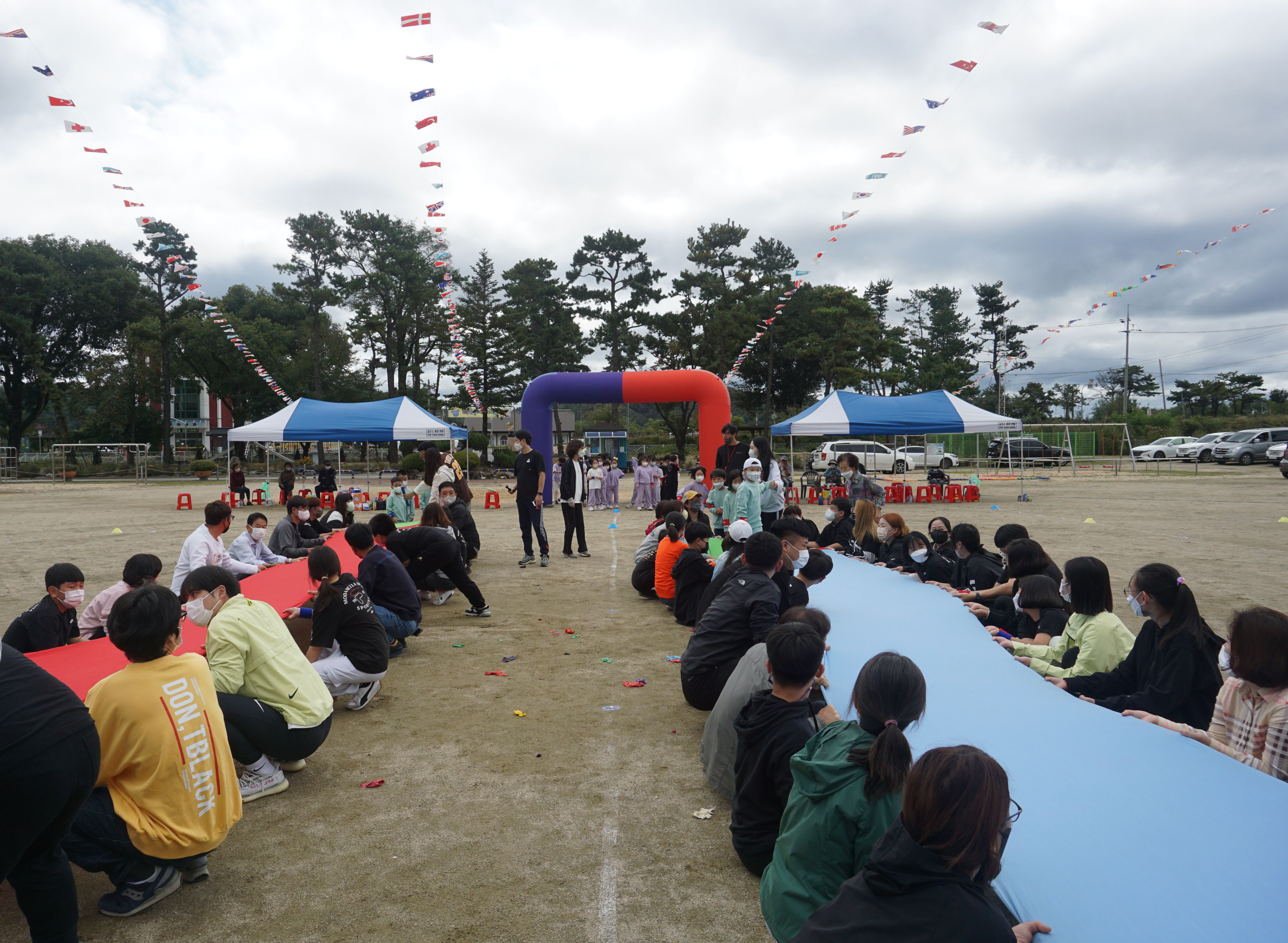□ 저학년 및 고학년 계주를 끝으로 가족과 함께하는 오전 활동을 마무리하고, 오후 경기는 학생 및 본교 선생님들과 함께 날아라 슈퍼보드, 은빛 파도타기, 으라차차! 줄다리기, 대동 한마음 놀이 후 즐거운 가을운동회를 마무리했다.