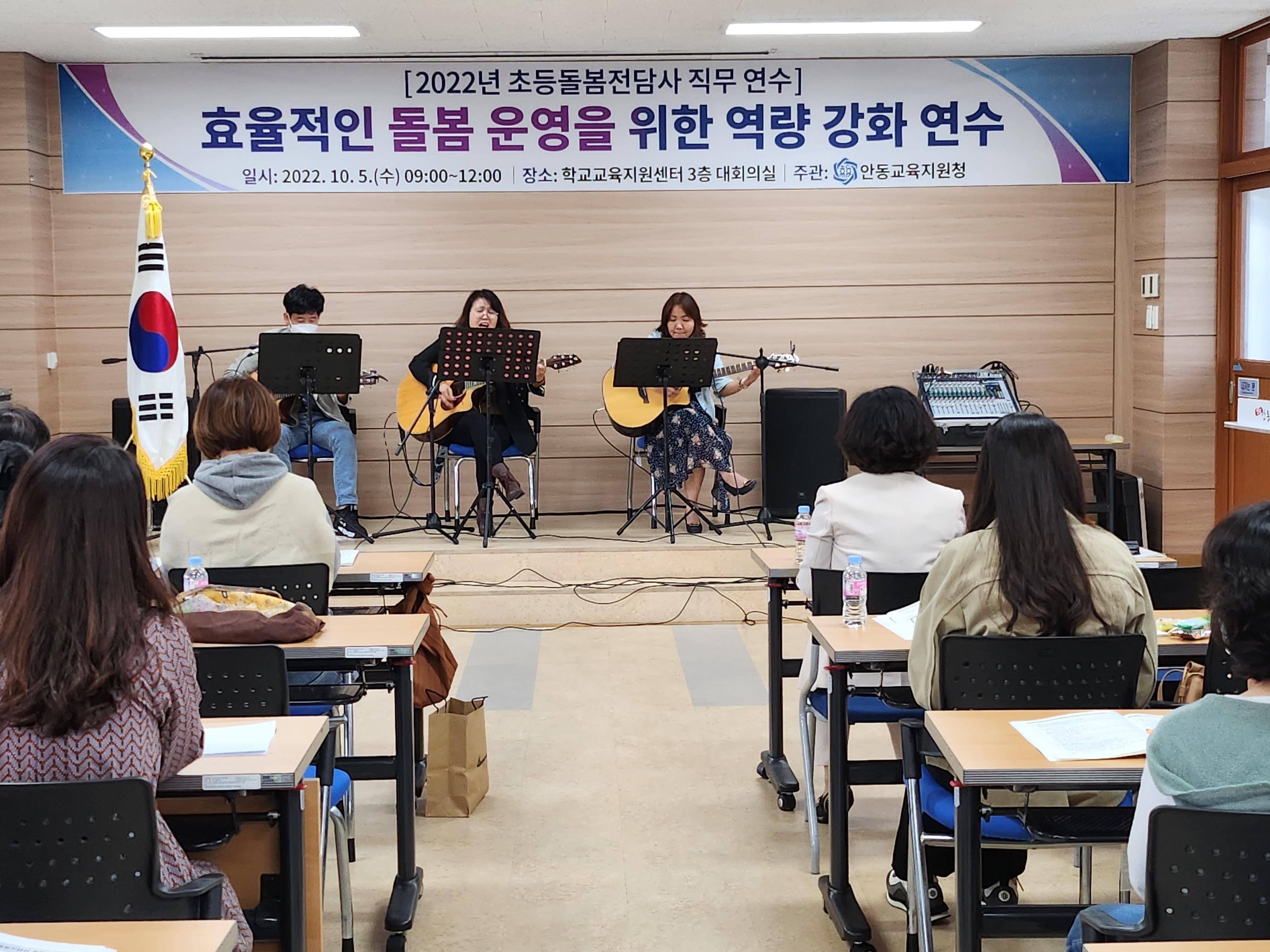 □ 경상북도안동교육지원청(교육장 이순호) 학교지원센터는 10월 5일 안동 학교교육지원센터 대회의실에서 초등 돌봄 운영의 효율적인 업무 수행을 위해 관내 초등학교의 초등돌봄전담사 41명을 대상으로 역량 강화를 위한 직무 연수를 실시하였다.