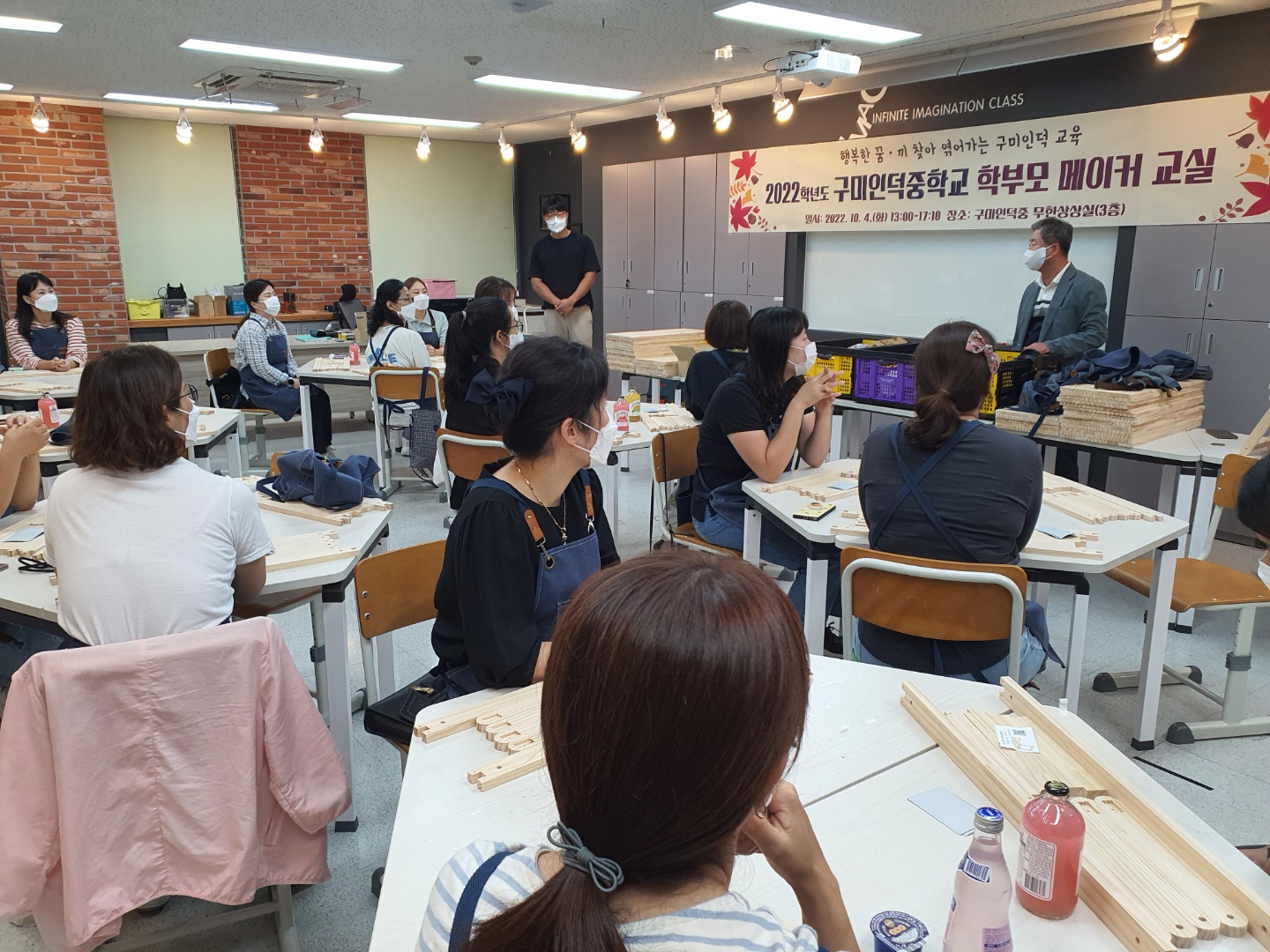 □ 구미인덕중학교(교장 김대윤)는 10월 4일(화) 오후 1시 본교 학부모를 대상으로 한 연수(학부모 메이커 교실)를 실시하였다.