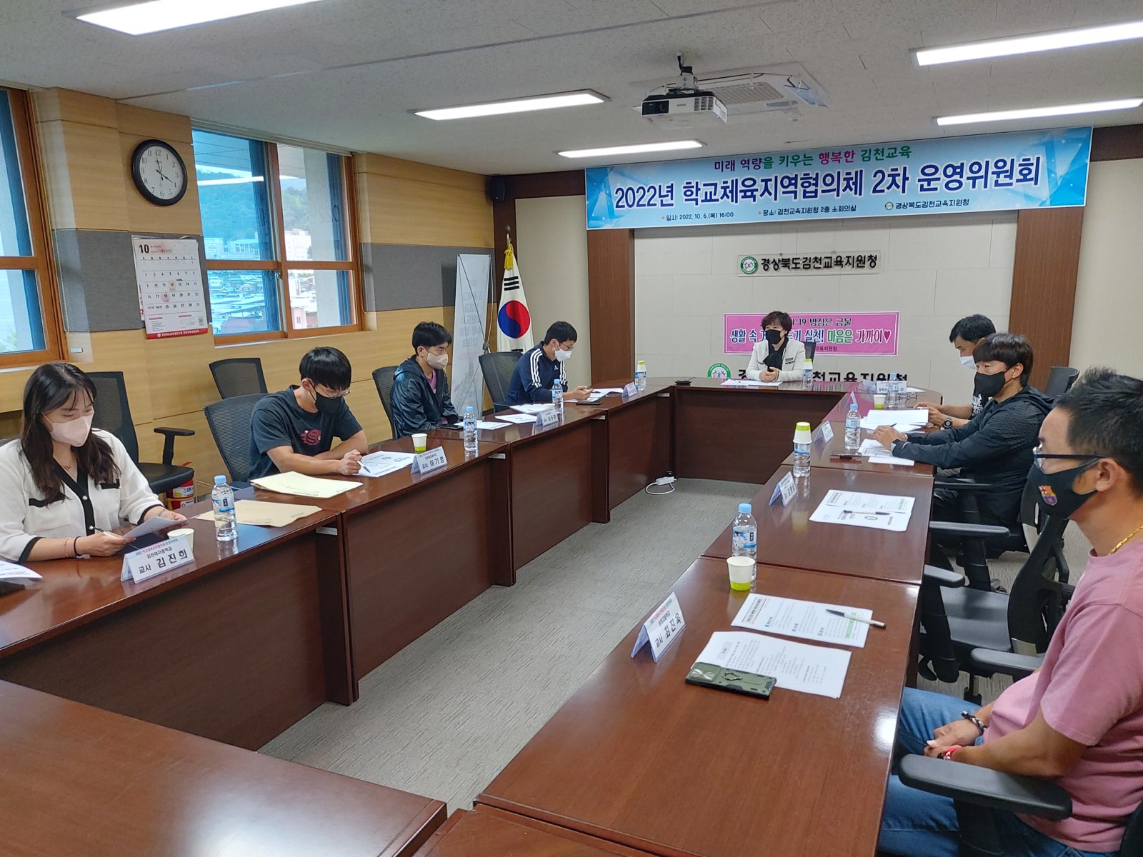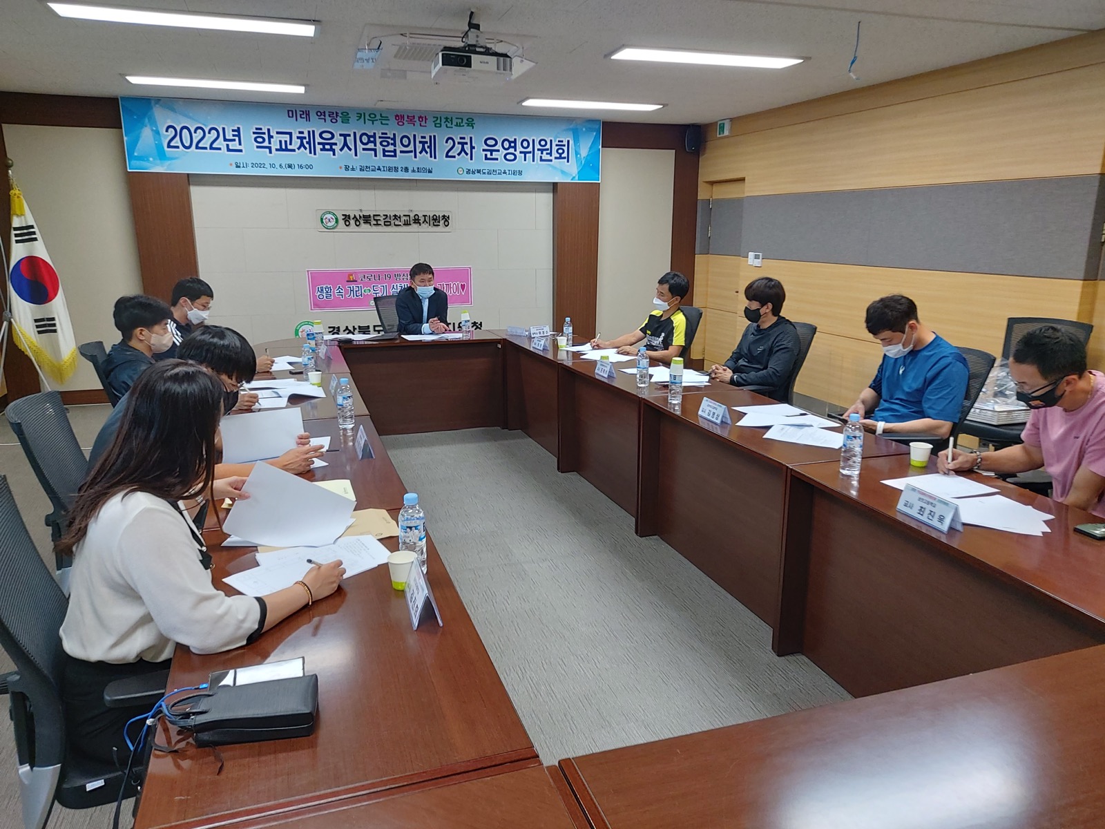 □ 경상북도김천교육지원청(교육장 박삼봉)은 10월 6일(목) 오후 4시 김천교육지원청 소회의실에서 ‘교육가족 공동체의 스포츠 거버넌스 구축’을 위한 2022년 제2차 학교체육지역협의체 운영위원회를 개최하였다.
