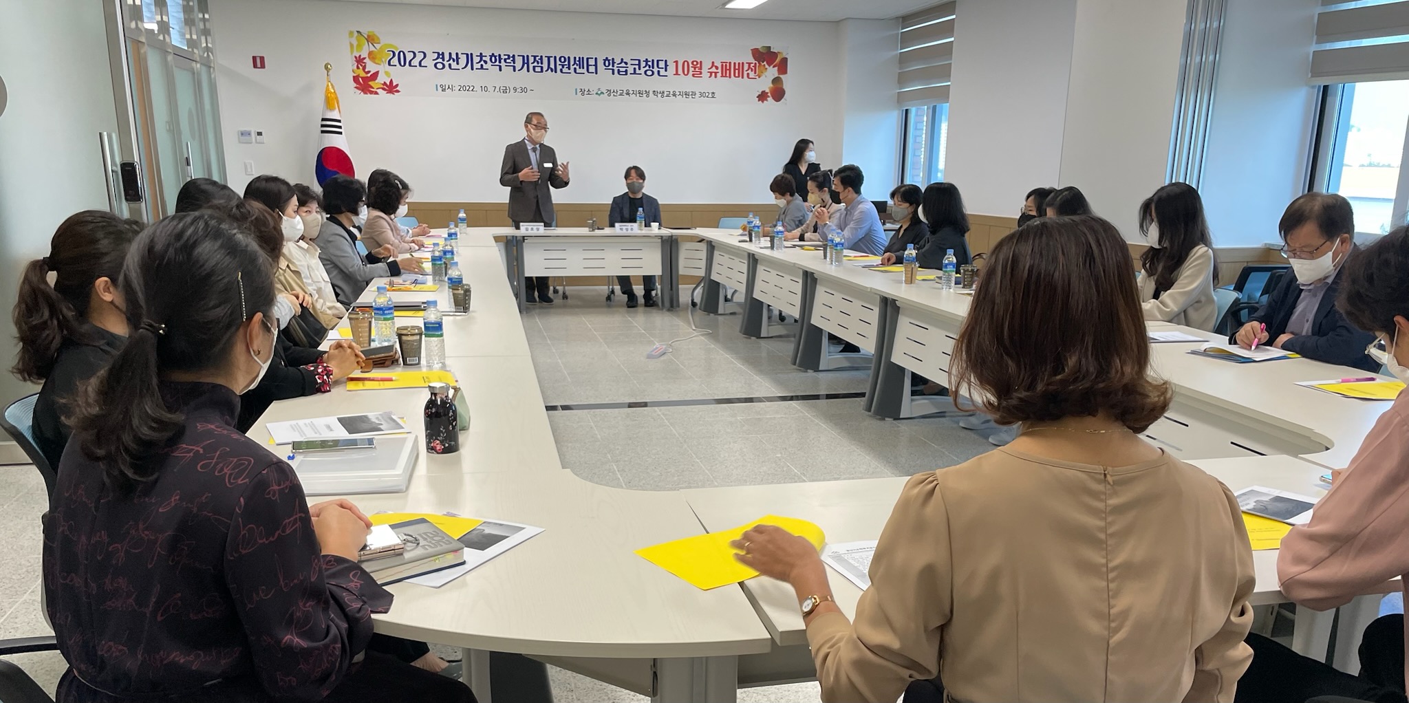 □ 경산교육지원청(교육장 이양균) 경산기초학력거점지원센터는 2022년 10월 7일(금) 경산교육지원청 학생교육지원관에서 경산, 청도지역의 학습코칭단 26명을 대상으로 학습코칭 사례 슈퍼비전을 진행하였다.