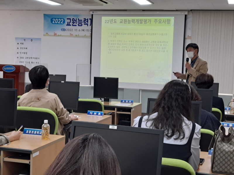 경상북도예천교육지원청(교육장 권혜자)은 6일 예천교육지원청 3층 정보화교육실에서 초‧중‧고등학교 교원능력개발평가 핵심 실무자를 대상으로 교원 전문성 신장을 위한 교원능력개발평가 온라인 시스템 활용 연수를 실시했다.