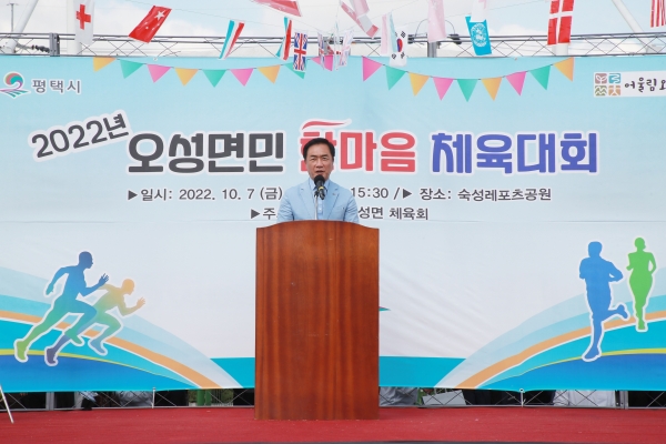 [금요저널] 평택시 오성면은 지난 7일 수확의 계절 청명한 가을날씨에 오성숙성레포츠공원에서 ‘2022년 오성면민 한마음 체육대회’ 행사를 개최했다.