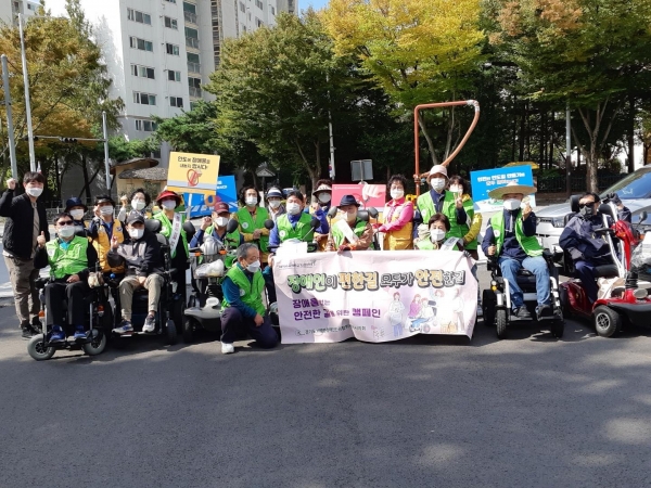 이날 전동휠체어를 탄 지역사회 장애인 등 40여명의 참여자는 “인도에 장애물을 내놓지 맙시다”, “안전한 인도 만들기에 모두 참여합시다” 등의 구호를 외치며 평택보건소에서 시청 주변 상가와 인도를 지나가는 시민들에게 내 상가와 집 앞의 쓰레기 등 인도에 놓여진 장애물을 치우자는 취지의 내용과 함께 종량제 봉투를 나눠주며 캠페인을 진행했다.