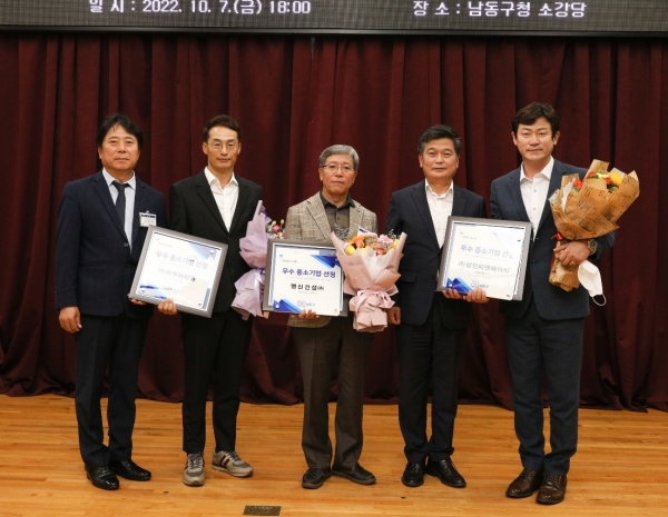 선정된 기업에는 우수기업인상 표창과 함께 부상으로 ‘남동구 선정 우수중소기업 현판”이 수여됐다.