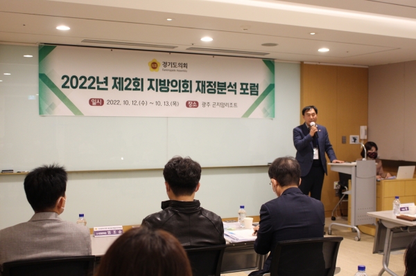 이날 포럼에는 경기도의회 예산정책위원회 윤종영 위원장, 방성환 위원, 이영희 위원이 참석했으며 경기도의회, 부산시의회, 인천시의회, 경상남도의회, 제주특별자치도의회 등 5개 시·도의회사무처 예산분석 관계자 등 30명이 참석한 가운데 1박2일으로 경기도 광주시 소재 곤지암리조트에서 ‘2022년 제2회 지방의회 재정분석 포럼’을 개최했다.