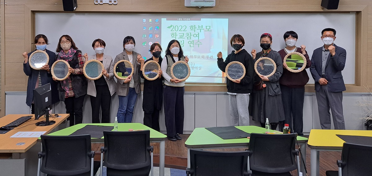 □ 2022 학부모 학교 참여 힐링 연수는 학부모와 학교가 연계하여 라탄 공예 거울 만들기를 통해 학부모 간 유대감이 높아지고 의사소통을 위한 네트워크를 형성하며 교육공동체로 힘을 모으는 계기가 되었다.