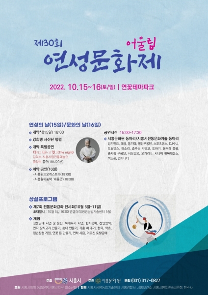 [금요저널] 시흥시가 주최하고 시흥문화원이 주관하는 시민축제인 ‘2022 연성문화제’가 오는 15일부터 16일까지 2일간 연꽃테마파크 일원에서 개최된다.