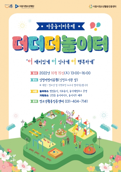 [금요저널] 시흥시청소년수련관-시흥시청소년활동진흥센터가 마을놀이터축제 ‘더더더 놀이터’를 오는 15일 오후 1시부터 4시까지 신천어린이공원에서 개최한다.
