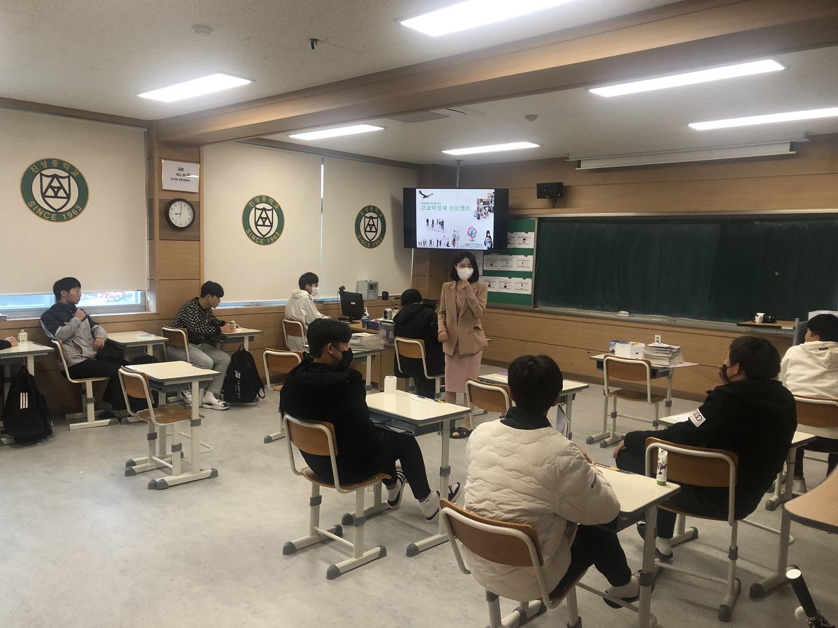 이날 교육은 코로나19 방역 수칙을 준수하여 마스크 착용, 거리 두기 비접촉식 수업으로 진행되었으며 체계적으로 고등학교 진학 준비를 하고, 진학 후 학교에 조기 적응하여 행복한 고등학교 생활이 될 수 있도록 하기 위하여 이루어진 교육이었다.