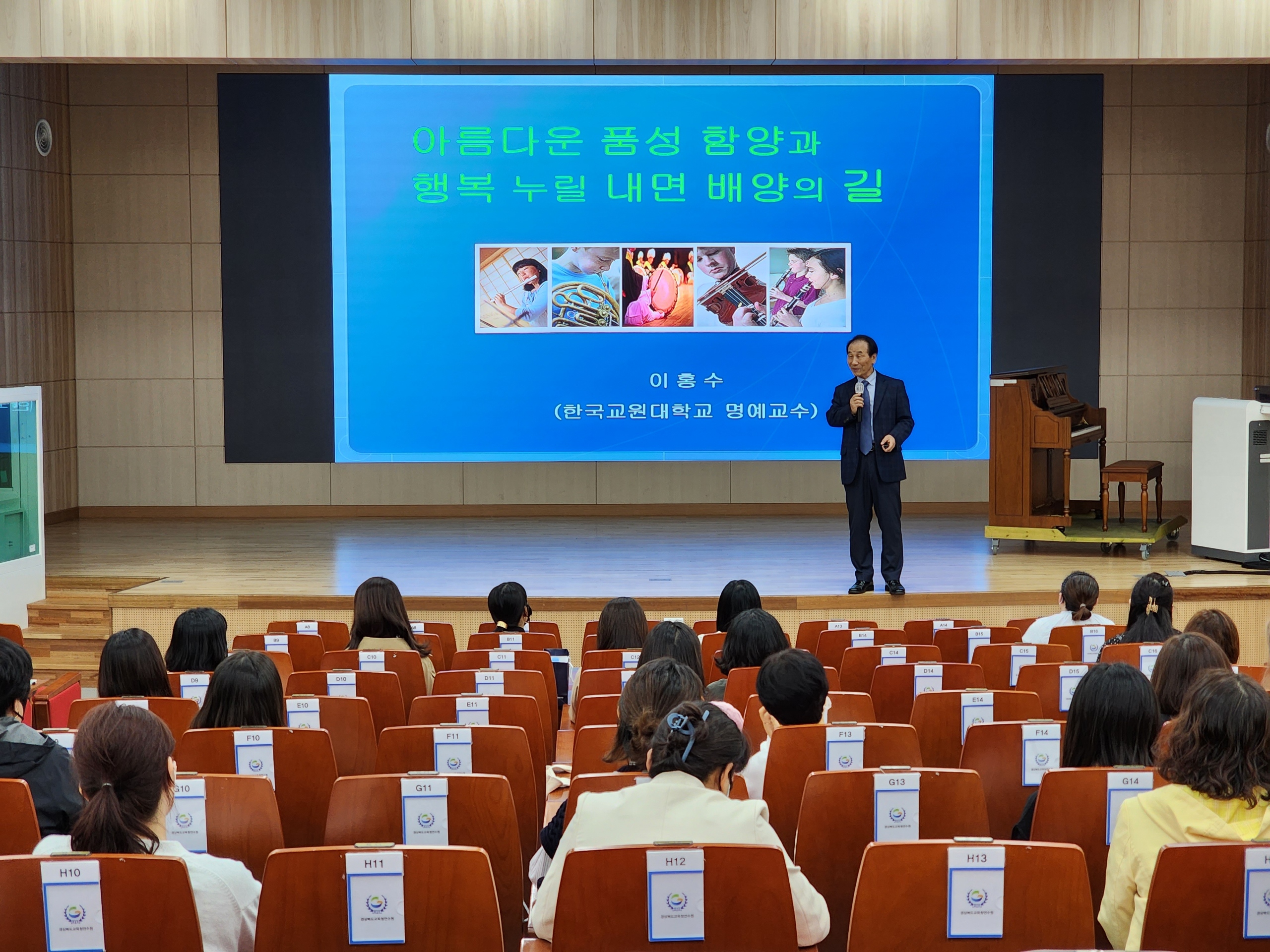 □ 구미교육지원청 소속 중부권 인성교육지원센터 주관으로 실시한 이번 연수는 한국교원대학교 이홍수 명예교수를 강사로 위촉하여 자녀의 행복한 성장을 돕는 부모의 역할과 인성교육 방법에 대한 특강으로 진행되었다. 특히 자녀의 내적 성장을 위한 성장기 예술 경험 및 학습 제공의 중요성과 감성과 품성을 키우는 교육에 대한 연수 내용으로 학부모의 큰 호응을 얻었다.