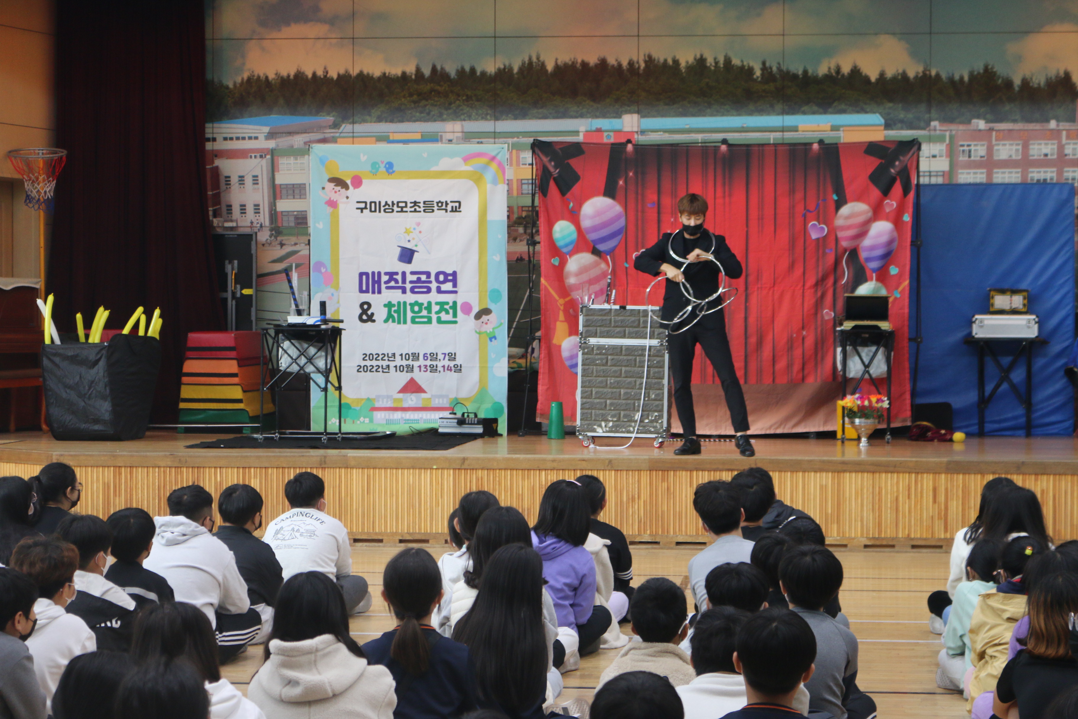 □ 상모초등학교(교장 이서현)는 2022년 10월 14일(금) 3학년, 10월 7일(금) 4학년, 10월 13일(목) 5학년, 10월 6일(목) 6학년을 대상으로 마술 공연 관람을 실시하였다.