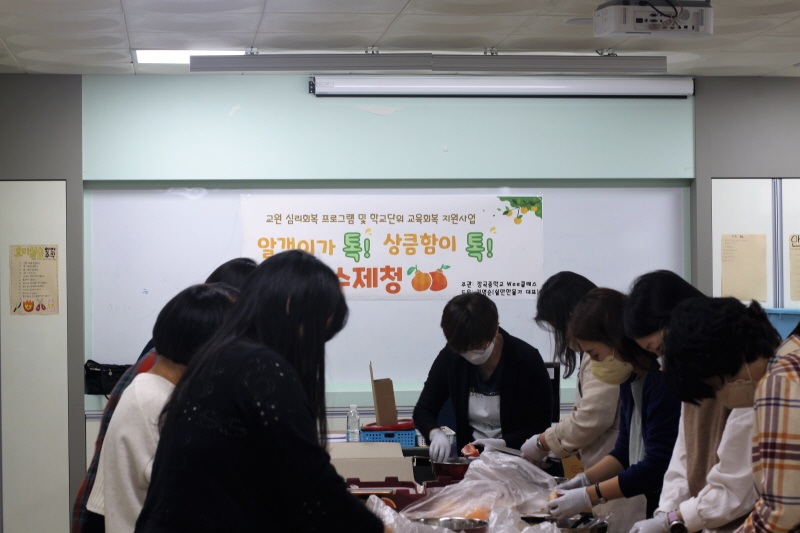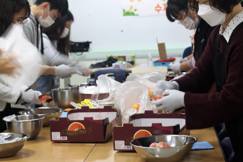 □ 수제청 만들기를 하면서 교직원의 집단의식 강화와 신뢰감을 형성하고, 새로운 추억을 쌓고, 스트레스와 피로도 해소할 수 있도록 하였다.