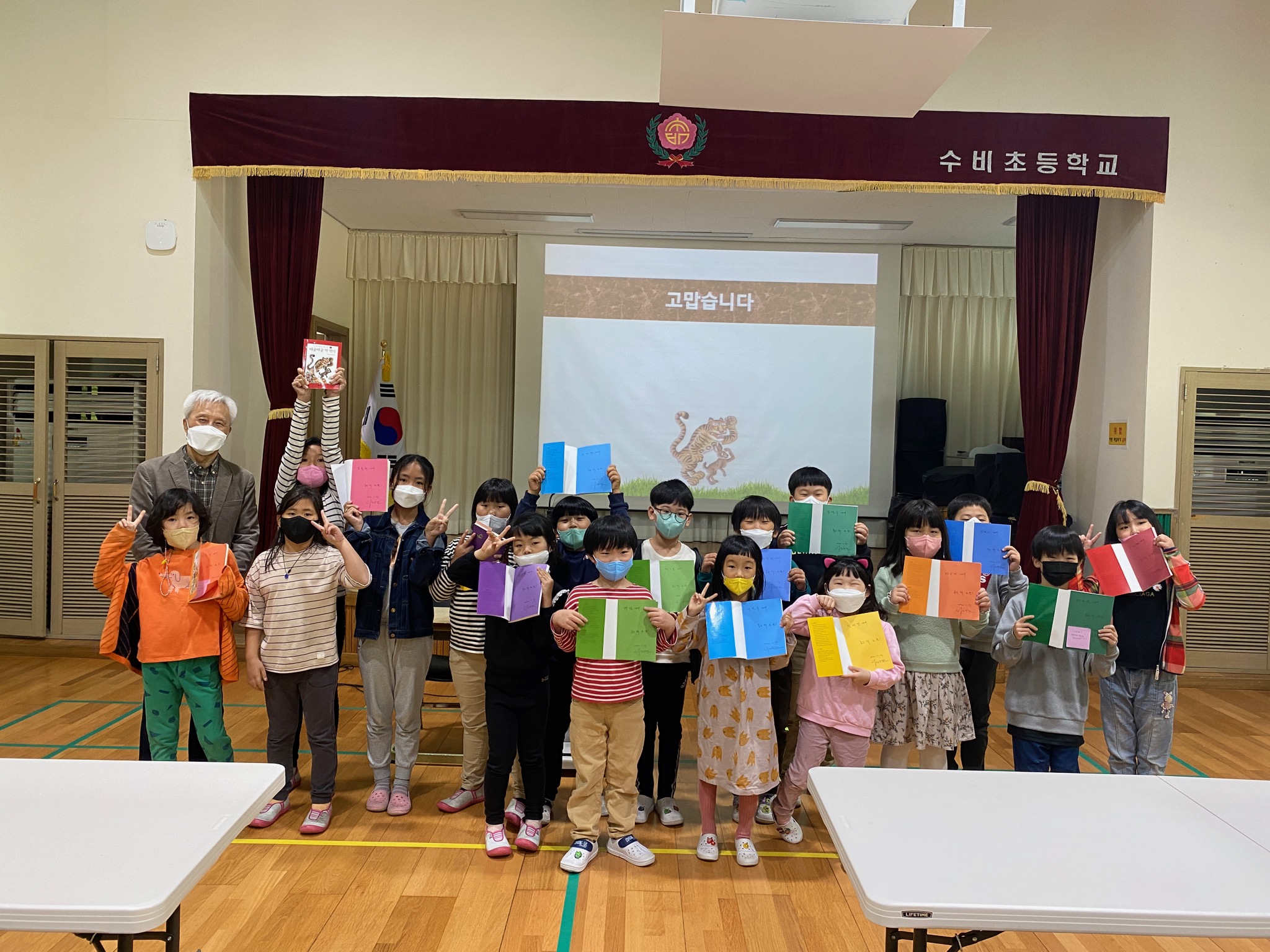 □ 수비초등학교(교장 진형대)는 학년별로 운영하고 있는 책읽기수업동아리 활동의 일환으로 지난 13일, 본교 유치원 1-6학년 학생 29명을 대상으로 ‘작가와의 만남’ 행사를 개최했다.