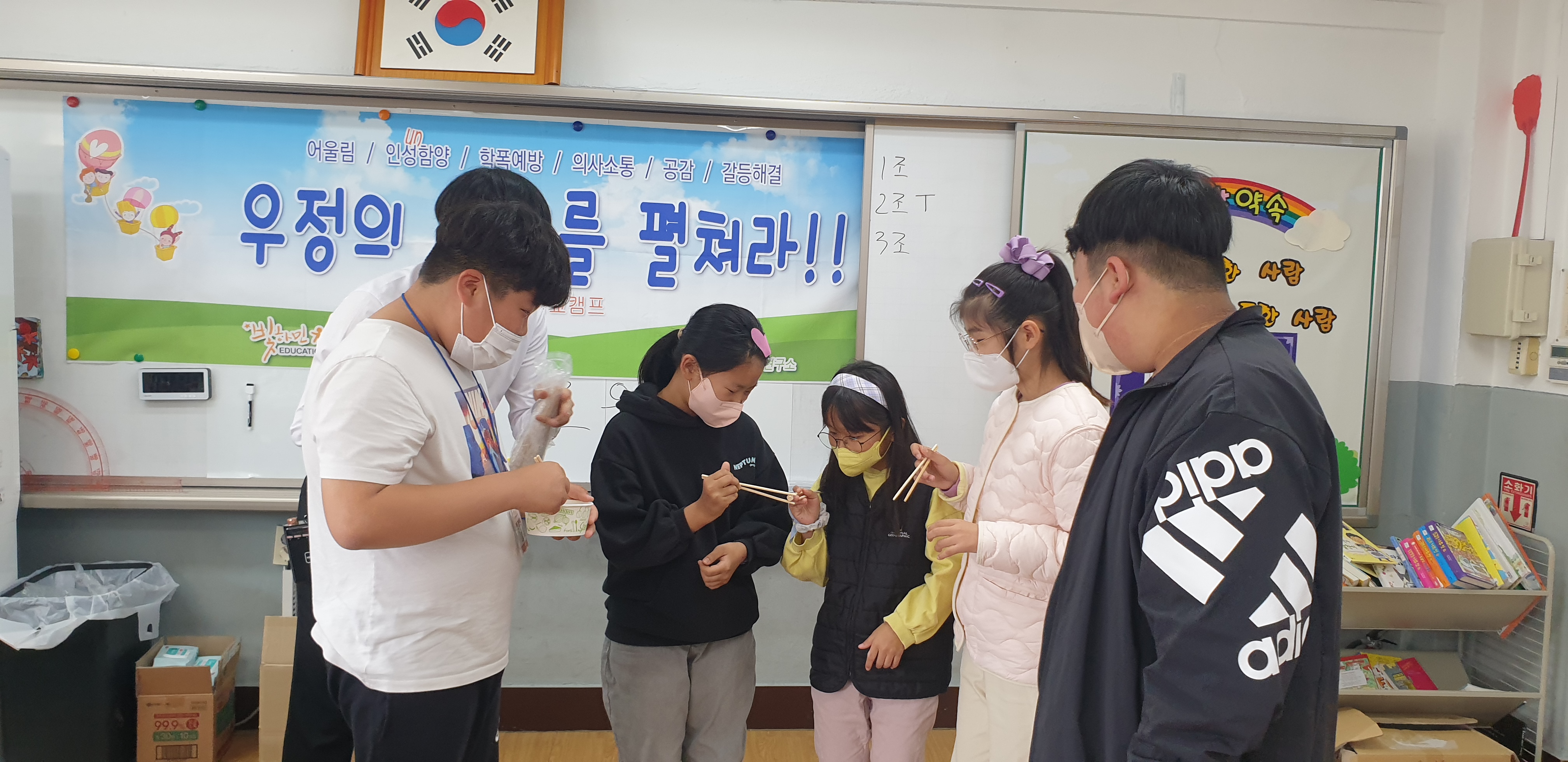 □ 이 캠프를 통해 학급 내 구성원 간의 소통과 배려로 서로 존중하고 아끼는 분위기를 형성할 수 있었으며 코로나로 인해 지친 일상에서 정서 안정 및 치유의 효과를 통해 폭력에 대처하는 공동체의 힘 향상과 올바른 가치관을 형성할 수 있었다.
