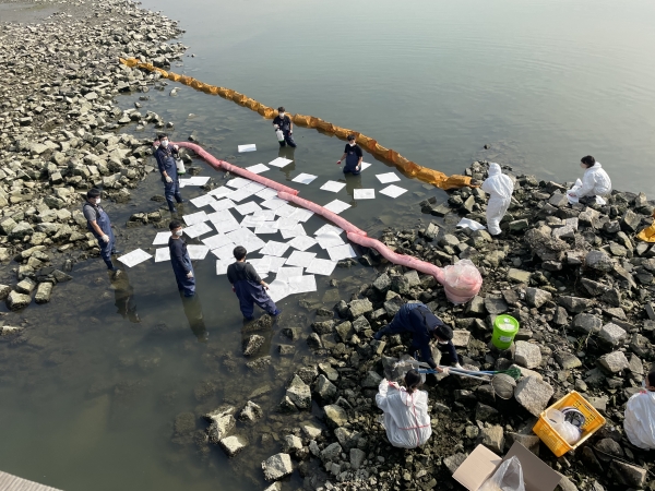 이번 훈련에는 중구자율환경협의회 소속 기술인력을 포함해 총 20여명이 참가해 상황반, 방제반, 오염조사반으로 3개반으로 나눠 진행했다.