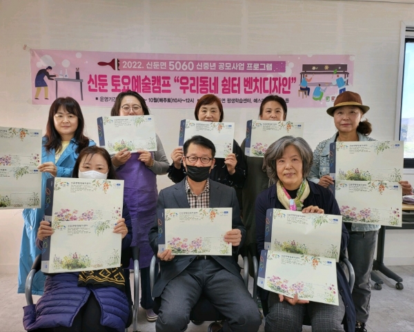 [금요저널] 신둔면 평생학습센터는 5060신중년 토요예술캠프 신중년 사업으로 행정봉투 디자인을 운영 신둔의 봄과 여름 두 가지 디자인을 출시했다.