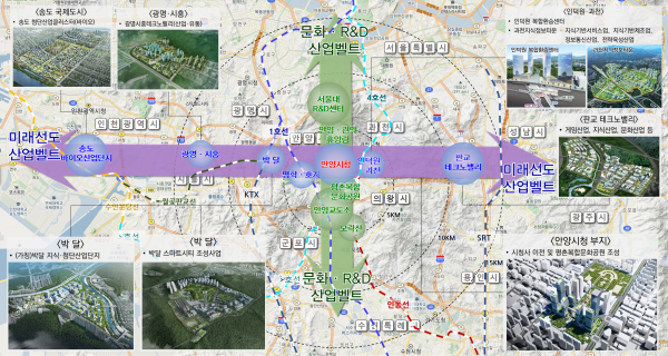 ‘+’에는 안양시를 중심으로 동서축뿐 아니라 남북으로 서울대~안양시청~안양교도소~모락산을 잇는 ‘문화·연구개발 벨트’를 구축한다는 의미를 담았다.