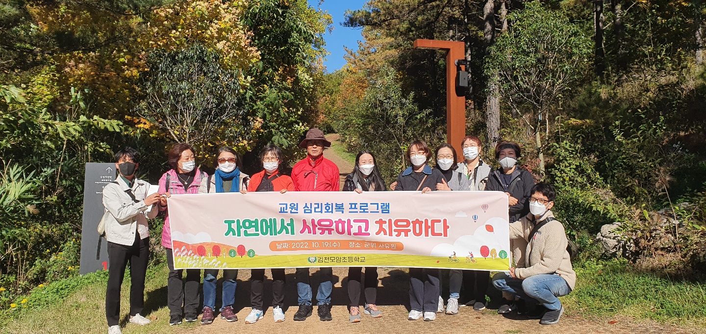 □ 김천모암초등학교(교장 하헌택)는 10월 19일(수) 전교원을 대상으로 군위 사유원에서 숲과 건축물을 관람하는 교원 회복 프로그램을 실시하였다.