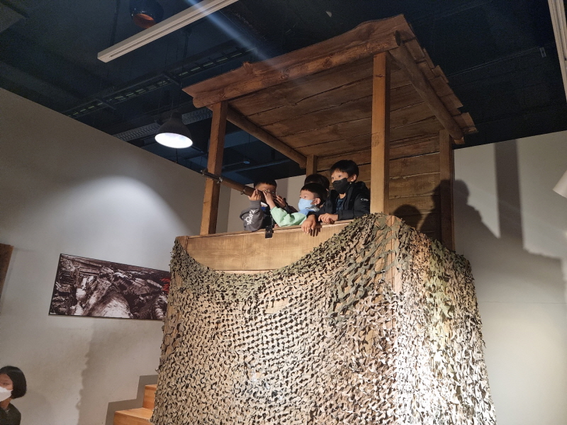 □ 장곡초 특수교육대상학생들은 전투체험관에서 직접 낙동강방어선전투를 체험해보는 시간을 가졌다. 전투복을 입어 보고, 격전지에서 총을 들고 사격도 해보고, 전차에 탑승해 “전군 직격하라”라고 외치며 낙동간 전투에 참여해보는 시간을 가졌다