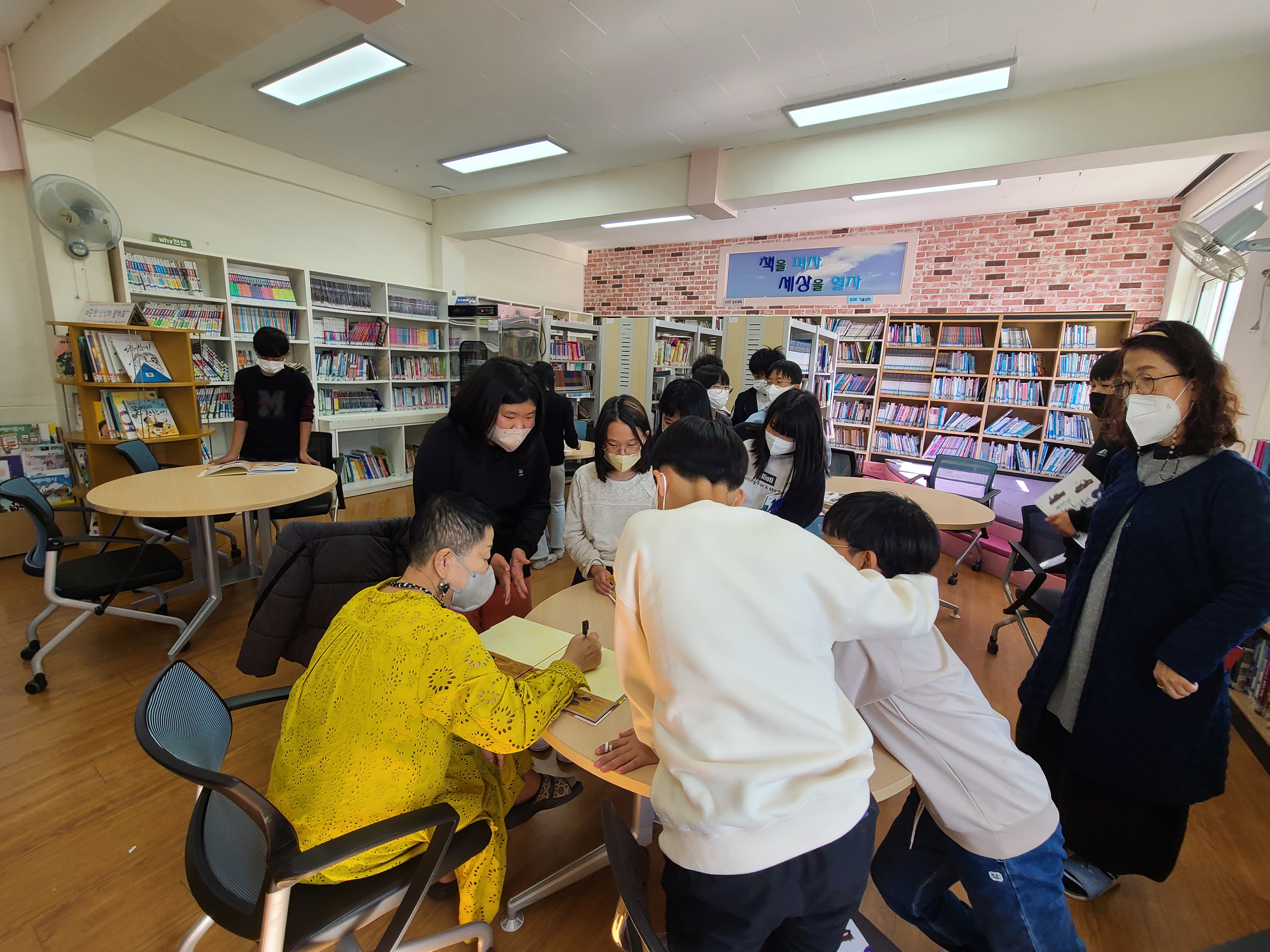 □ 대룡초등학교(교장 김명규)는 10월 20일(목) 전교생을 대상으로 ‘소중애 그림책 작가와의 만남’ 도서관 행사를 실시하였다. 이 행사는 학생들이 그림책 저자를 직접 만나 대화하는 시간을 통해 책에 대한 이해를 높이고 작가의 눈을 통해 세상을 볼 수 있는 기회를 가짐으로써 책 읽기의 즐거움을 발견할 수 있는 기회를 제공하고자 실시되었다.