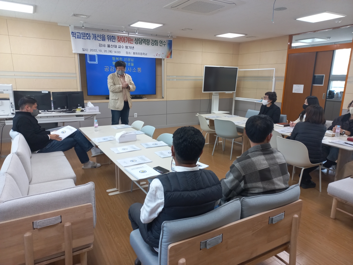 연수 참여자는 “학교로 직접 찾아오는 상담역량 강화 연수를 통해 학생과의 건강한 관계 형성 방안과 교실 상황에서의 대처방안 등에 대해 함께 나누고 고민해 볼 수 있어서 유익한 시간이었다.”고 참여 소감을 밝혔다.