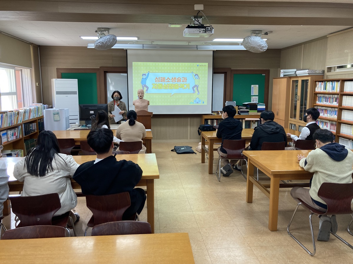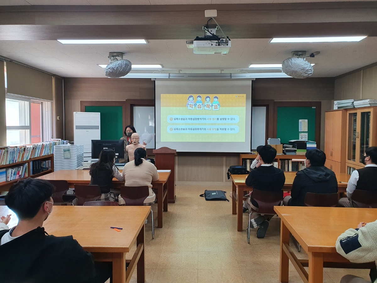 - 현동중학교(교장 김양훈)는 10월 19일(수) 6, 7교시에 도서관에서 전교생들이 심폐소생술 교육을 진행하였다. 강사는 청송교육지원청 순회보건교사가 담당하였다.